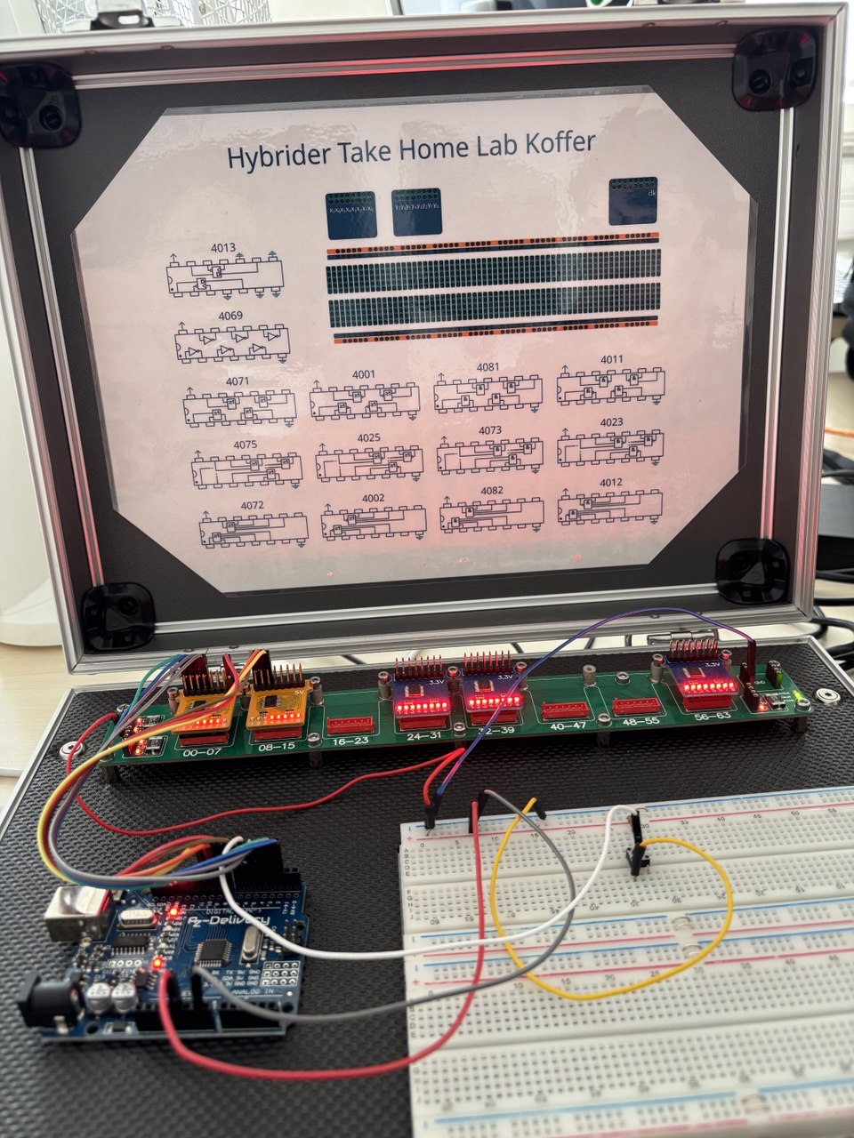 Саме тому наприкінці лютого представники кафедри програмних засобів Запорізької політехніки на запрошення професора Карстена Хенке відвідали ТУ Ільменау, де дослідили нову архітектуру CrossLab лабораторії GOLDi 2.0 та особливості її використання для підтримки компетентнісного викладання й навчання студентів комп’ютерних спеціальностей. Під час візиту студент групи КНТ–212 Ілля Пархоменко реалізував проєкт віддаленого керування експериментами GOLDi 2.0 з використанням програмно-апаратного забезпечення кейсу Hybrid Take-Home-Lab. Цей кейс надає студентам інтерфейсний блок, який вони можуть використовувати для зручного підключення модулів (Arduino, Raspberry Pi, FPGA або набори для експериментів з цифровою логікою) для віддаленого керування фізичним обладнанням GOLDi, створюючи гібридну домашню лабораторію.