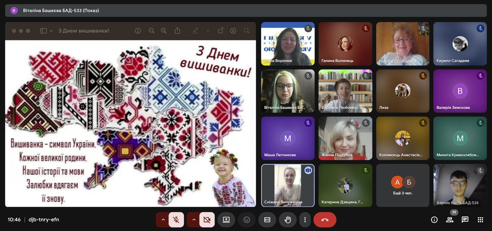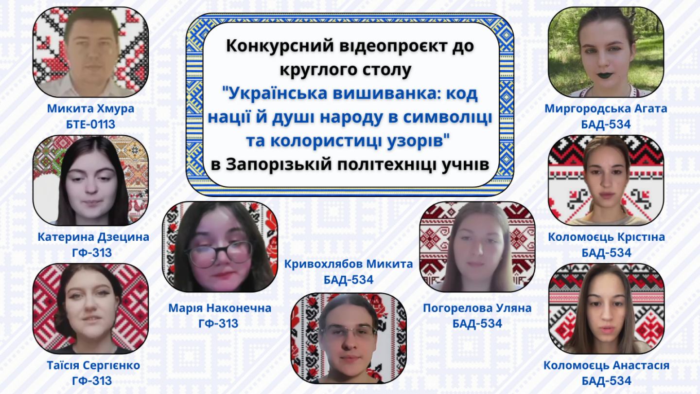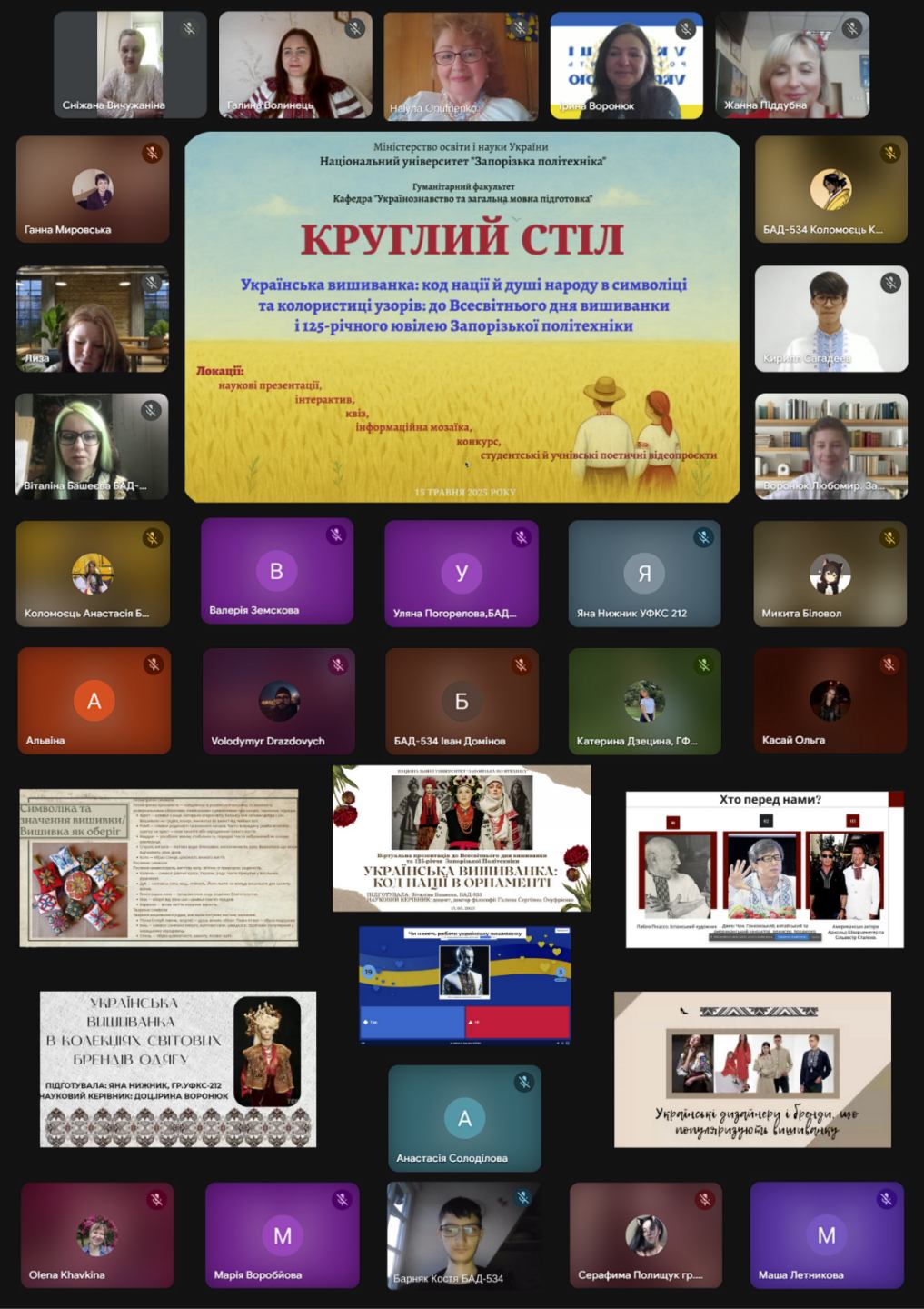 15 травня кафедра українознавства та загальної мовної підготовки організувала круглий стіл з науково-культурологічної проблематики «Українська вишиванка: код нації й душі народу в символіці та колористиці узорів». Захід присвячений Всесвітньому дню вишиванки та 125–річчю Запорізької політехніки.