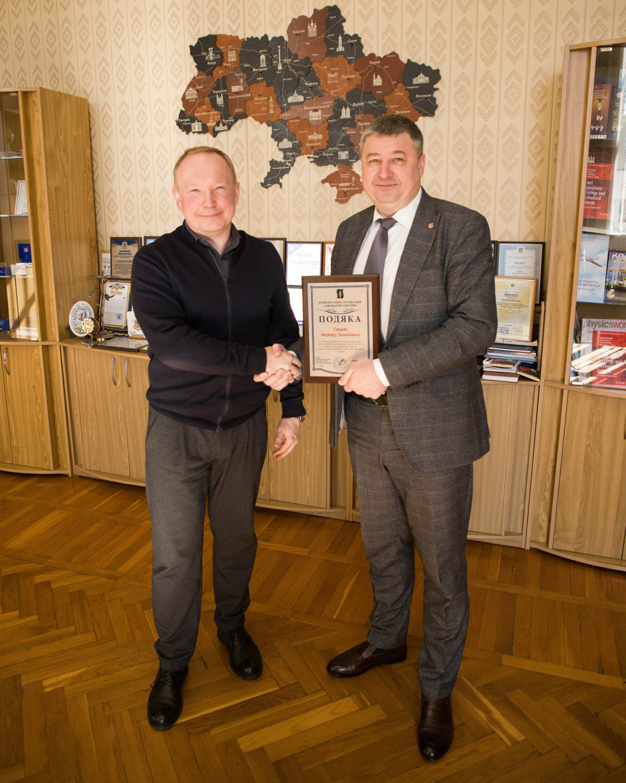 Максим Семенов вручив ректору Віктору Грешті Подяку від голови Національної асоціації адвокатів України за підтримку розвитку адвокатури.