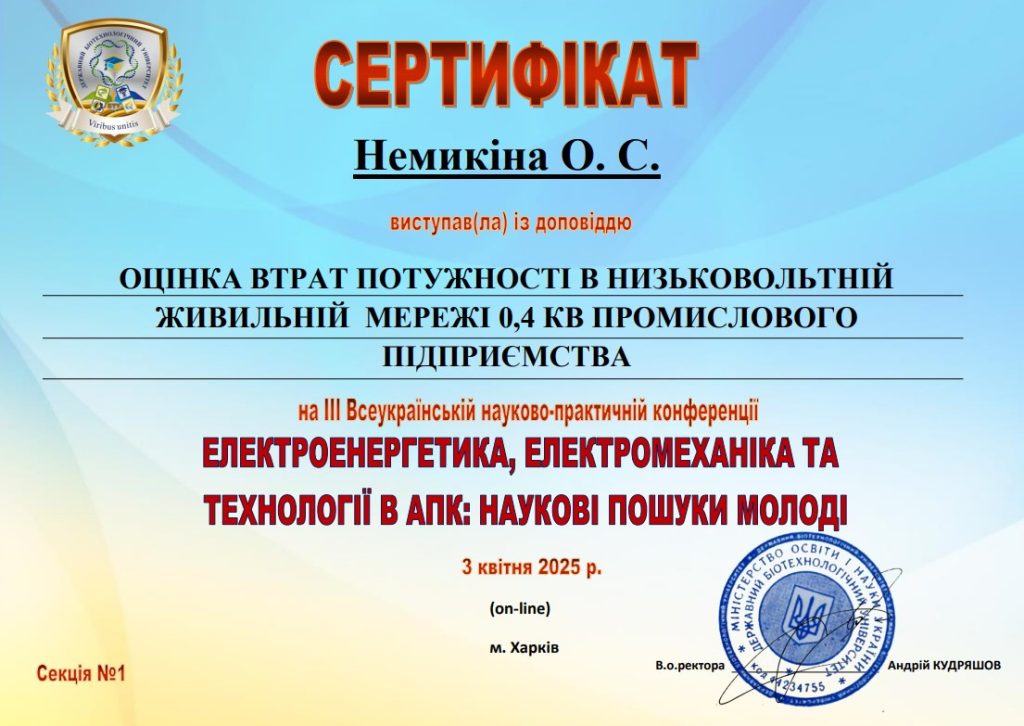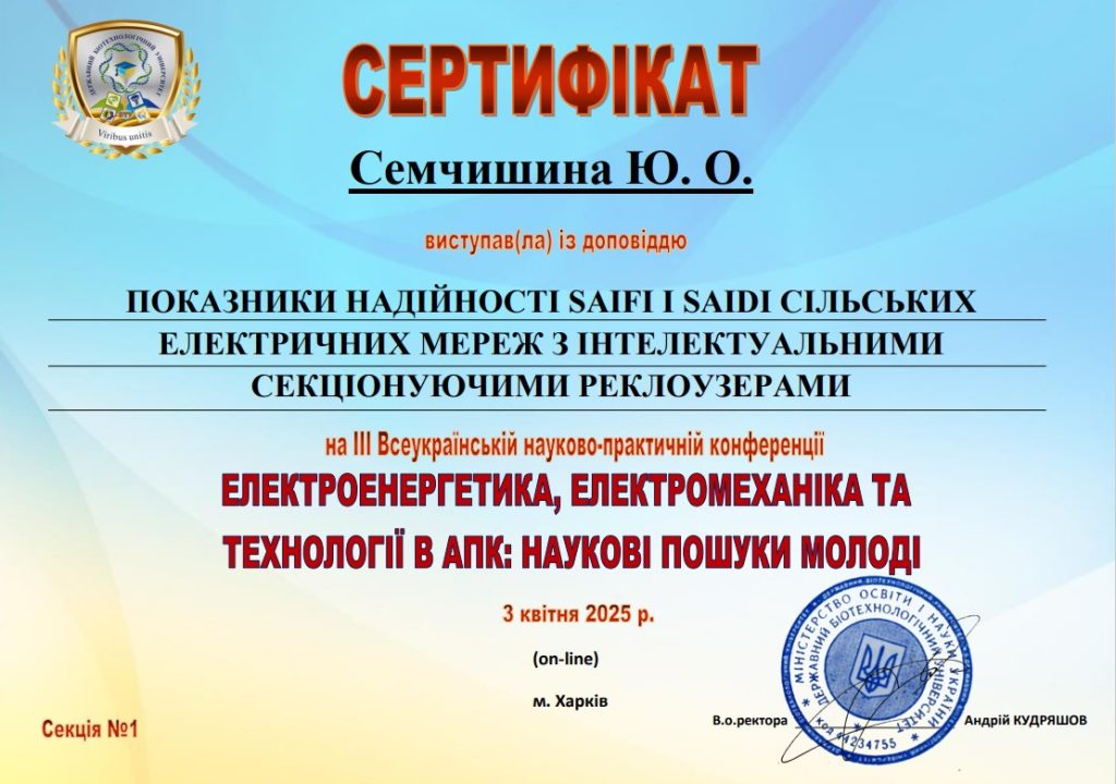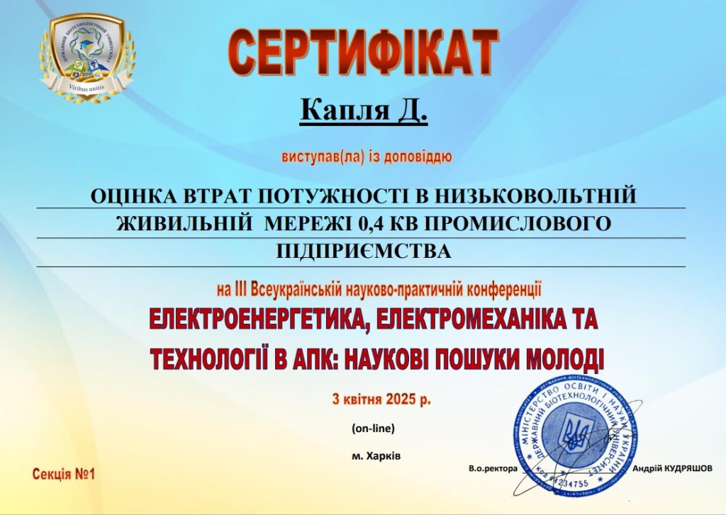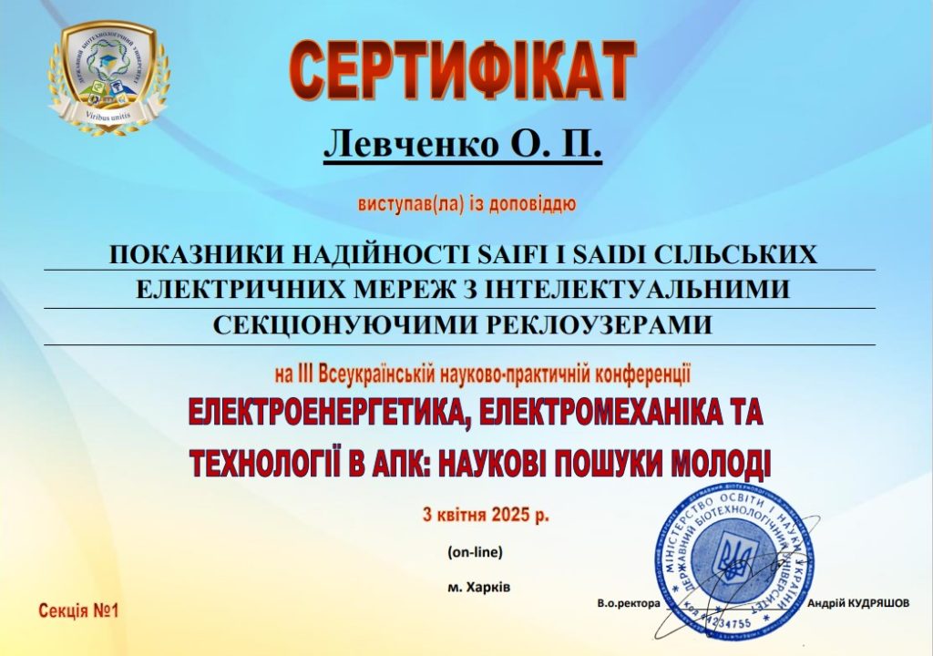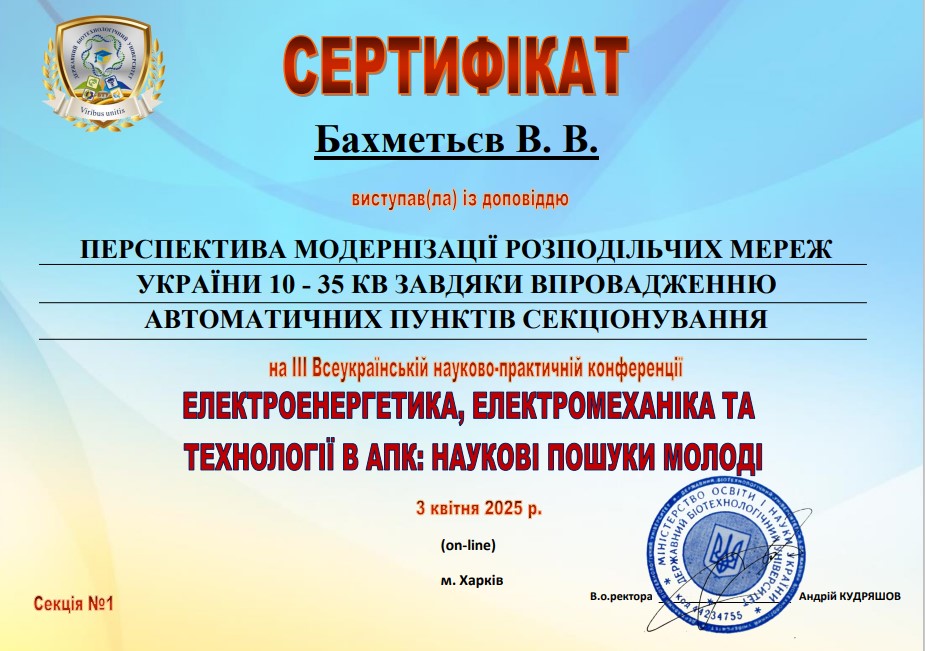 3 квітня 2025 року в м. Харків у Державаному біотехнологічному університеті (ДБТУ) на факультеті електроенергетики, робототехніки та комп’ютерних технологій.відбулася ІІІ Всеукраїнська науково-практична конференція «ЕЛЕКТРОЕНЕРГЕТИКА, ЕЛЕКТРОМЕХАНІКА ТА ТЕХНОЛОГІЇ В АПК: НАУКОВІ ПОШУКИ МОЛОДІ».