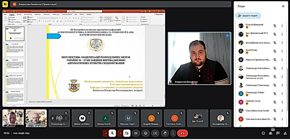 У цій конференції взяли участь онлайн студенти гр. Е-413сп Дмитро Тума, Ілля Дунай, магістр гр. Е-414 м Юлія Семчишина та аспіранти нашої кафедри Дмитро Капля, Олександр Левченко і Владислав Бахмєтьєв.