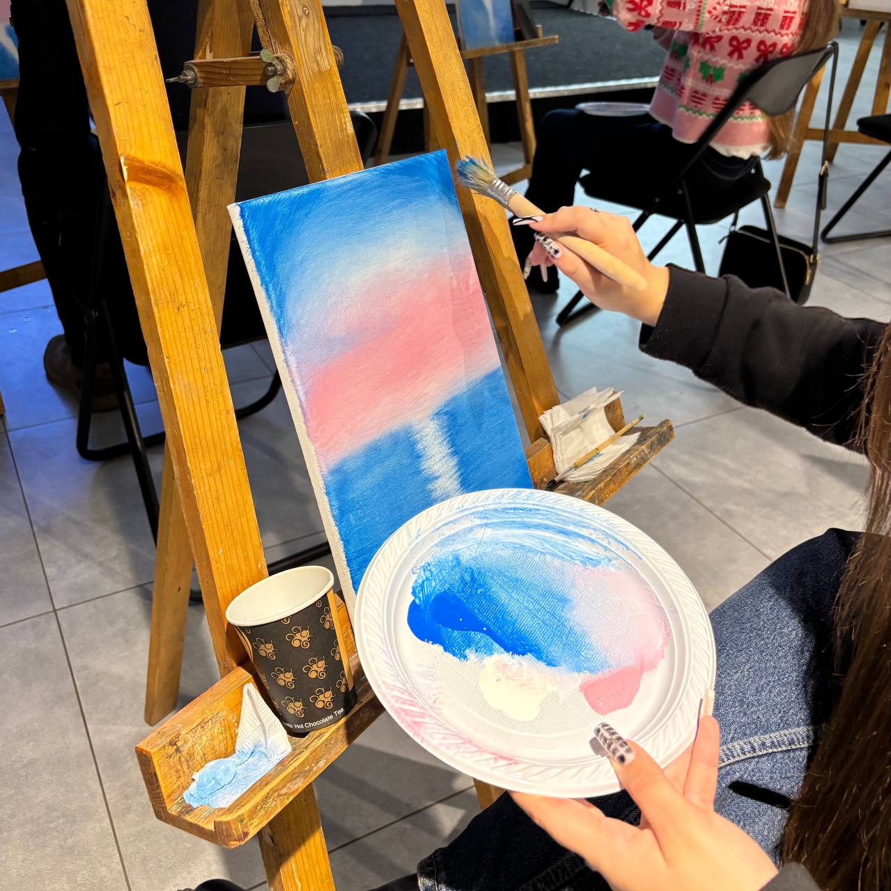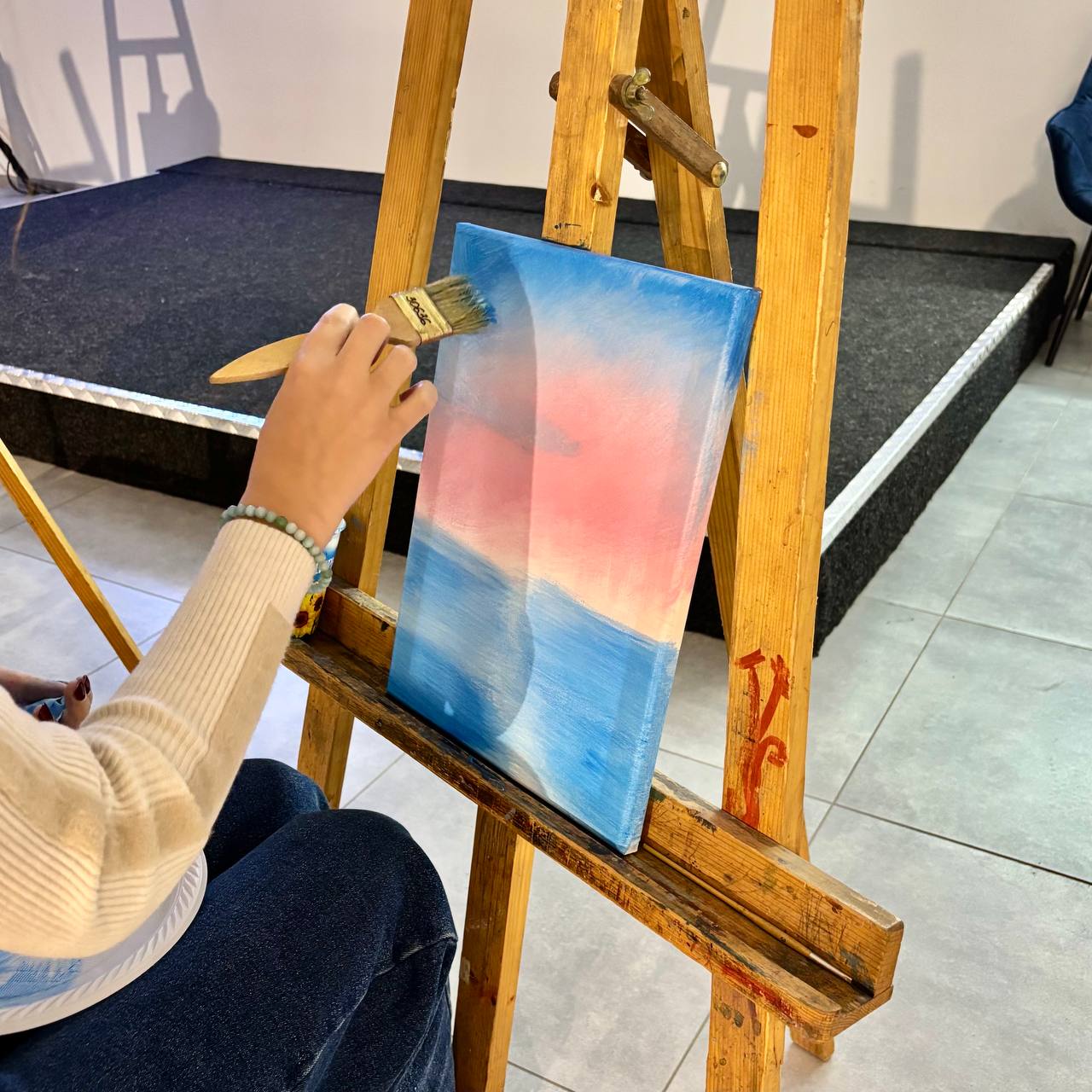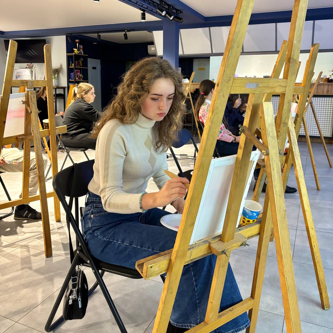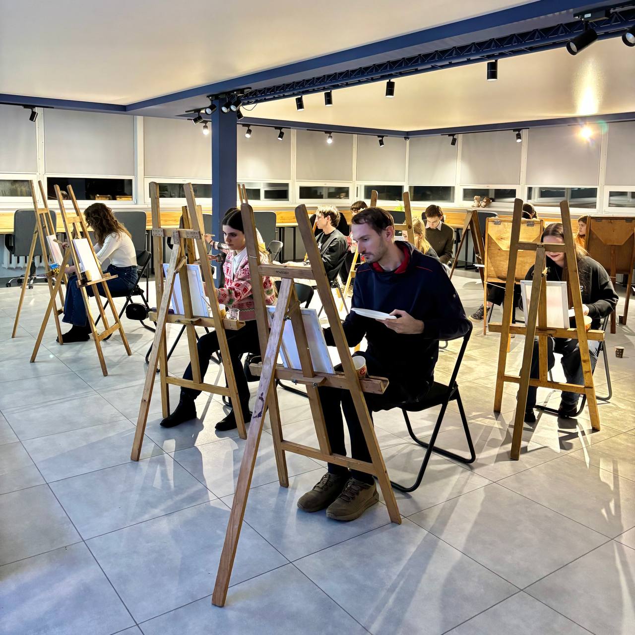 У спокійній та затишній атмосфері студенти занурилися у процес малювання, крок за кроком повторюючи за м’яким голосом художника. Під час арт-вечора кожен відчув себе митцем — хтось уперше тримав пензлик, а хтось вже впевнено малював пейзаж 😍