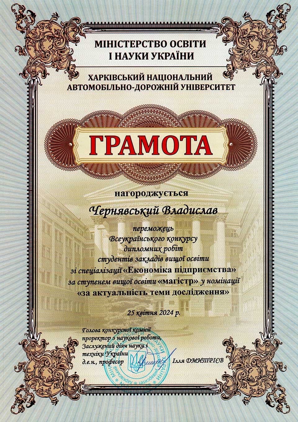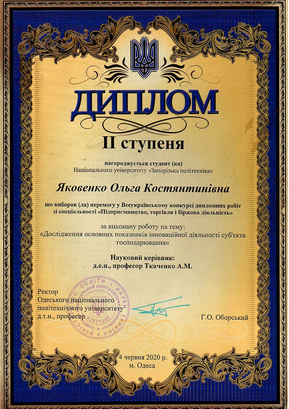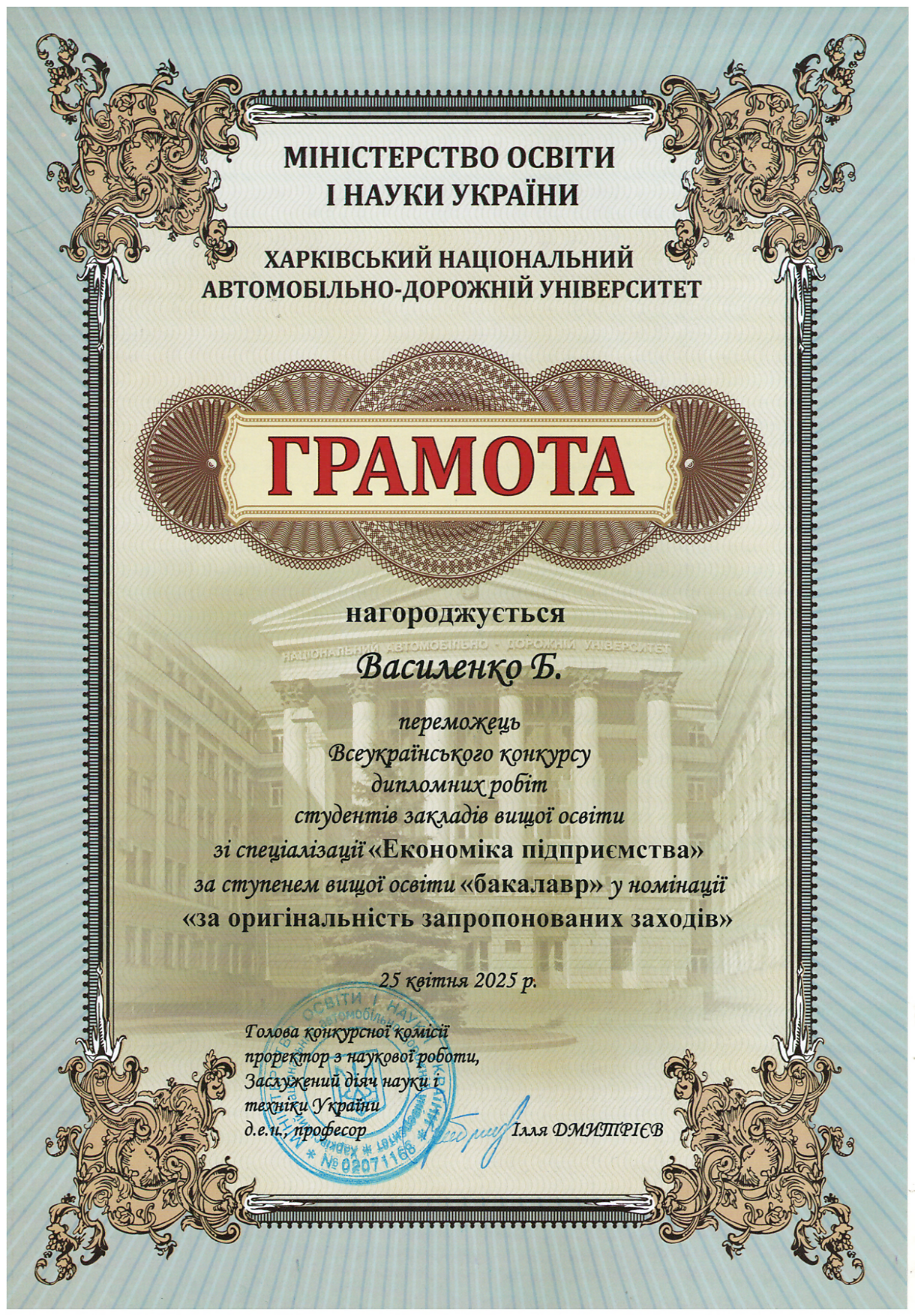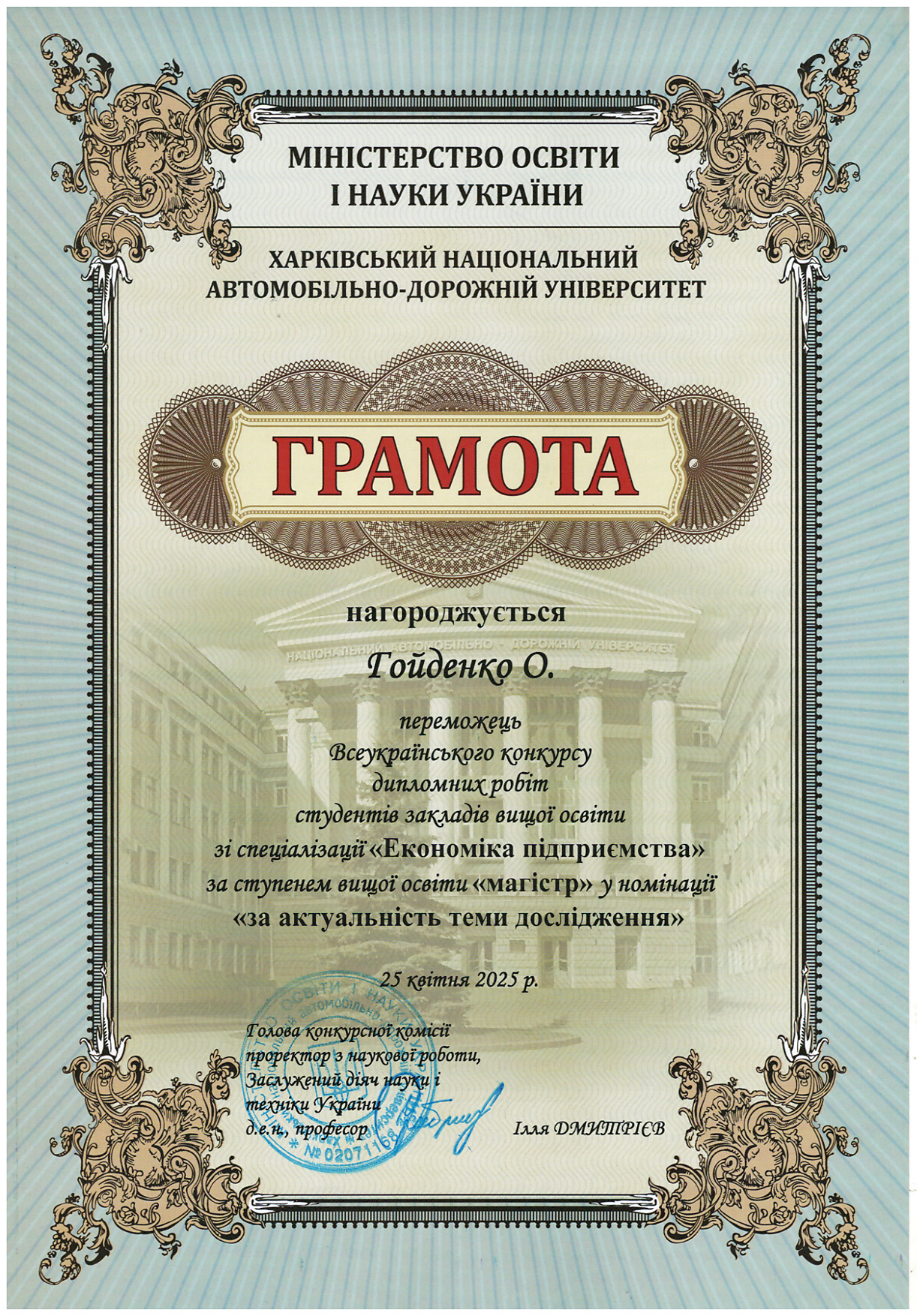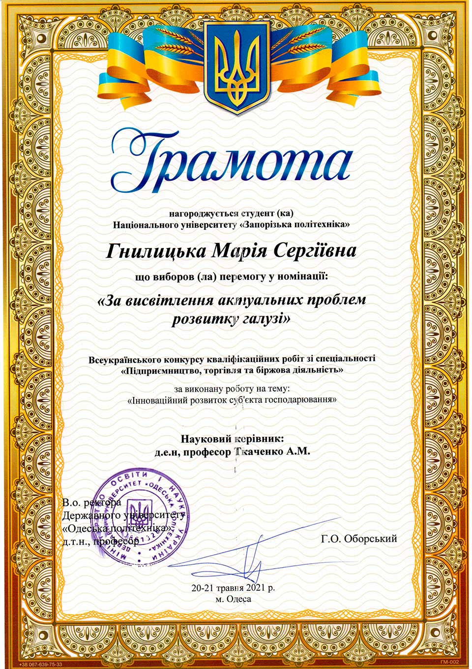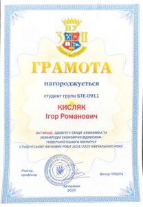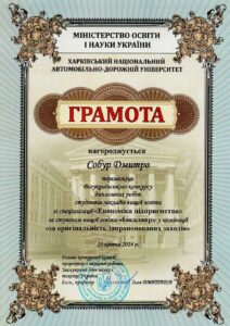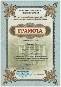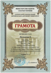 – здобувачів вищої освіти – 2: Батовський А.Є., Некрасова О., Азацький Б.