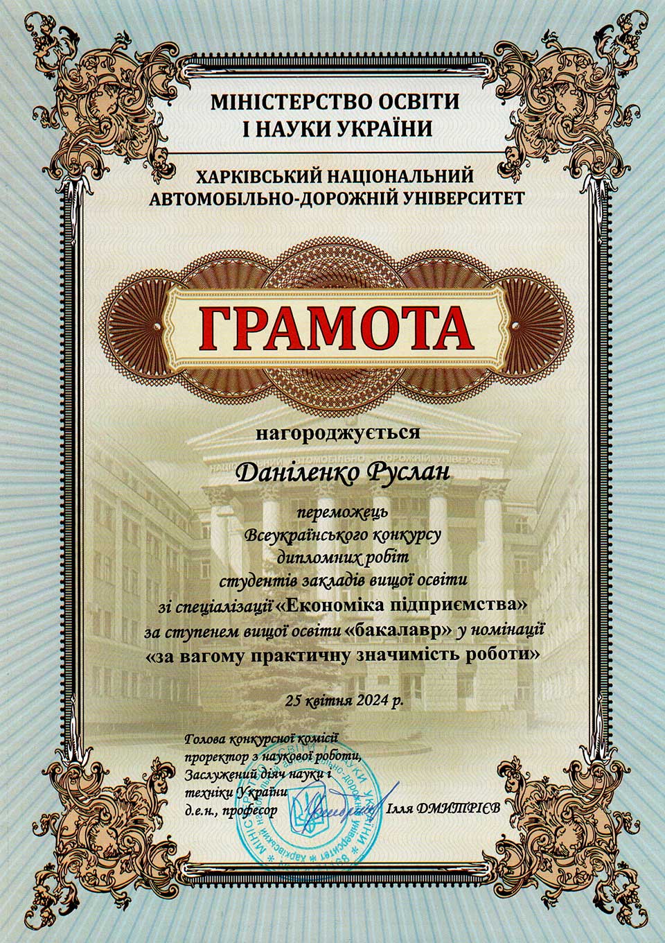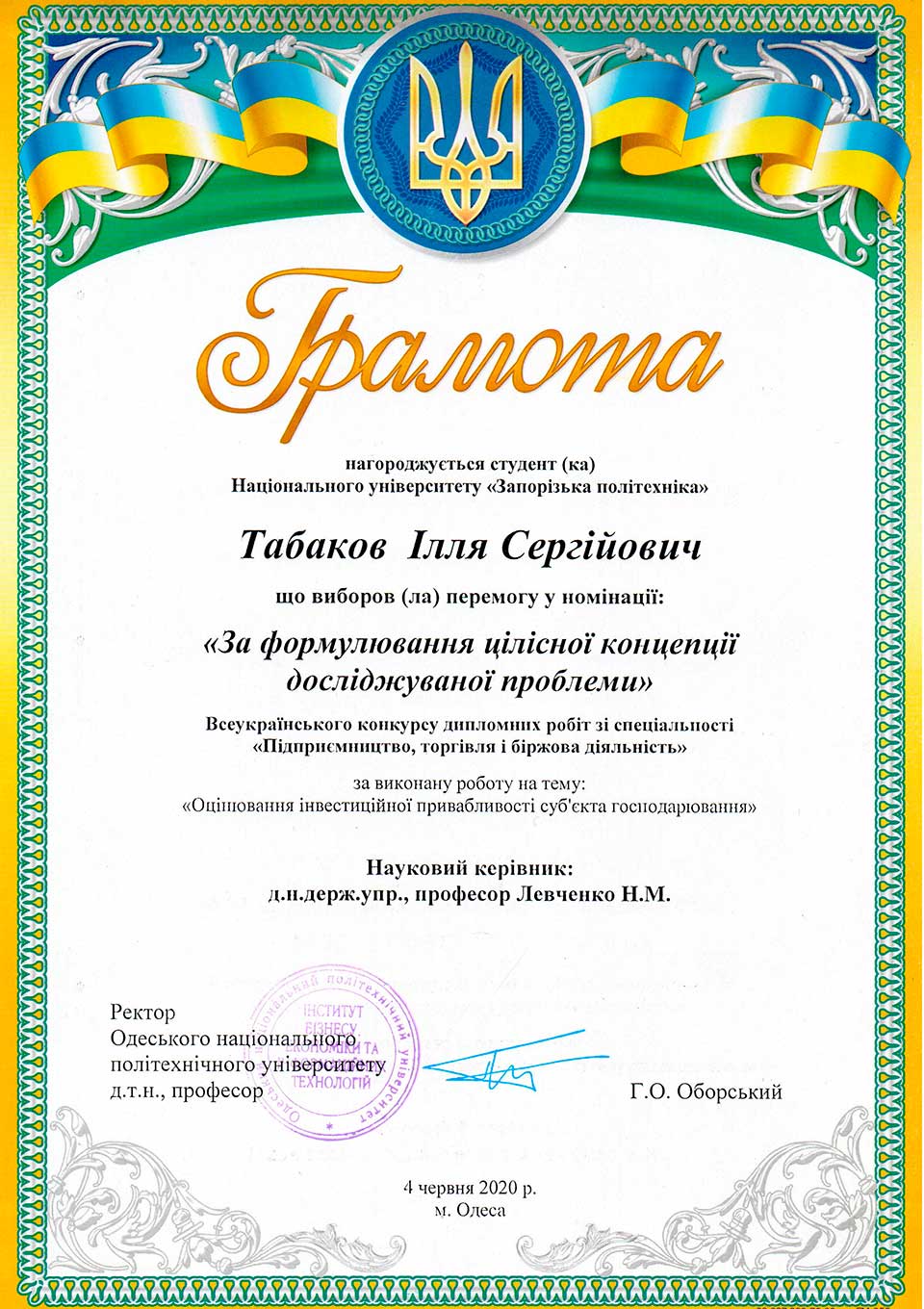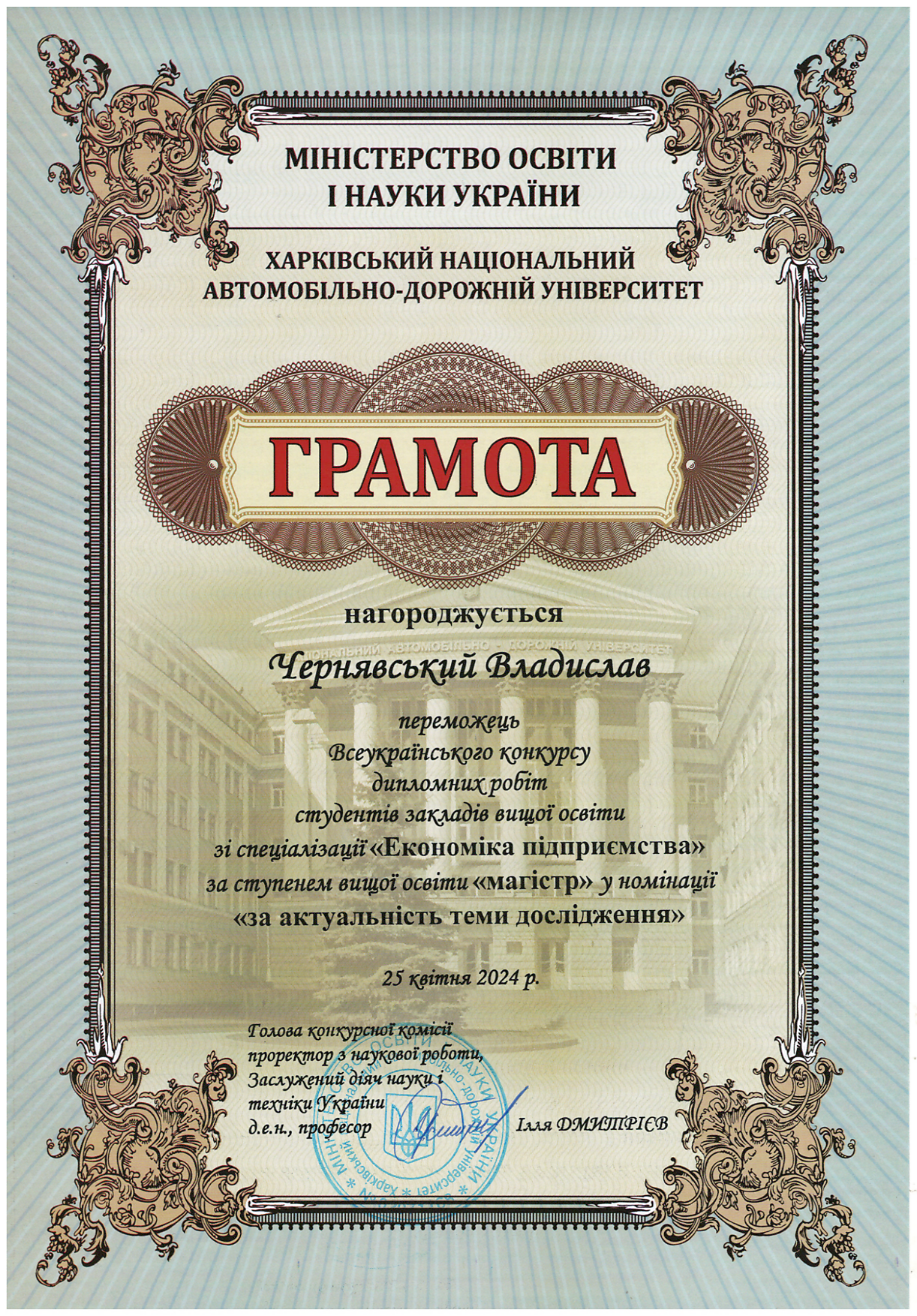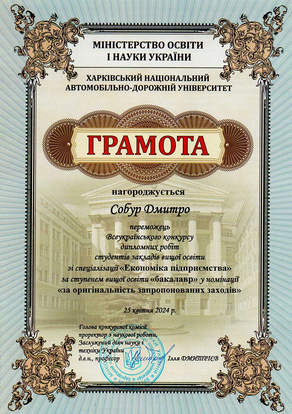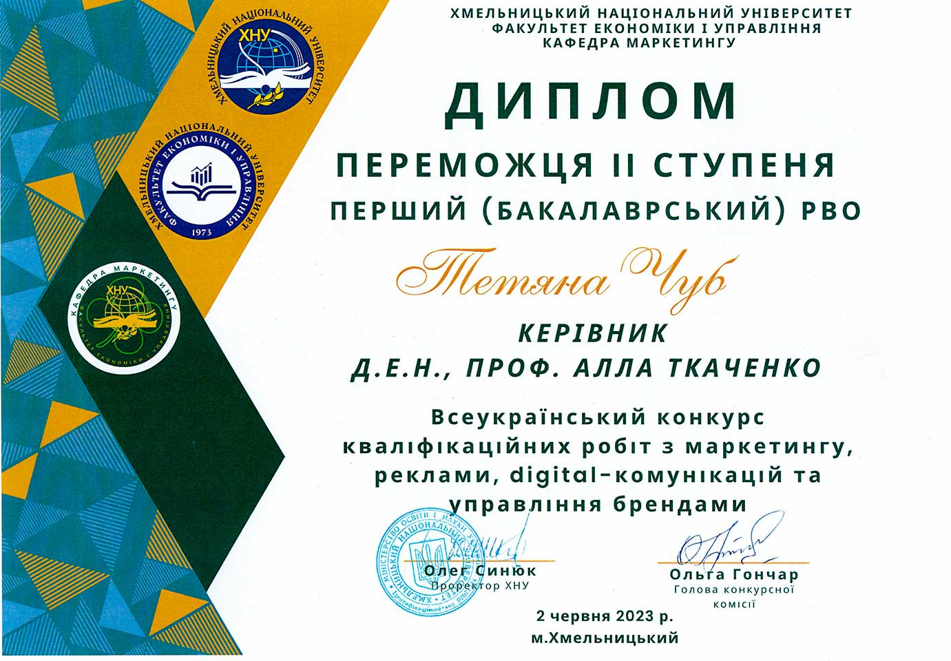 – здобувачів вищої освіти – 2: Батовський А.Є., Некрасова О., Азацький Б.
