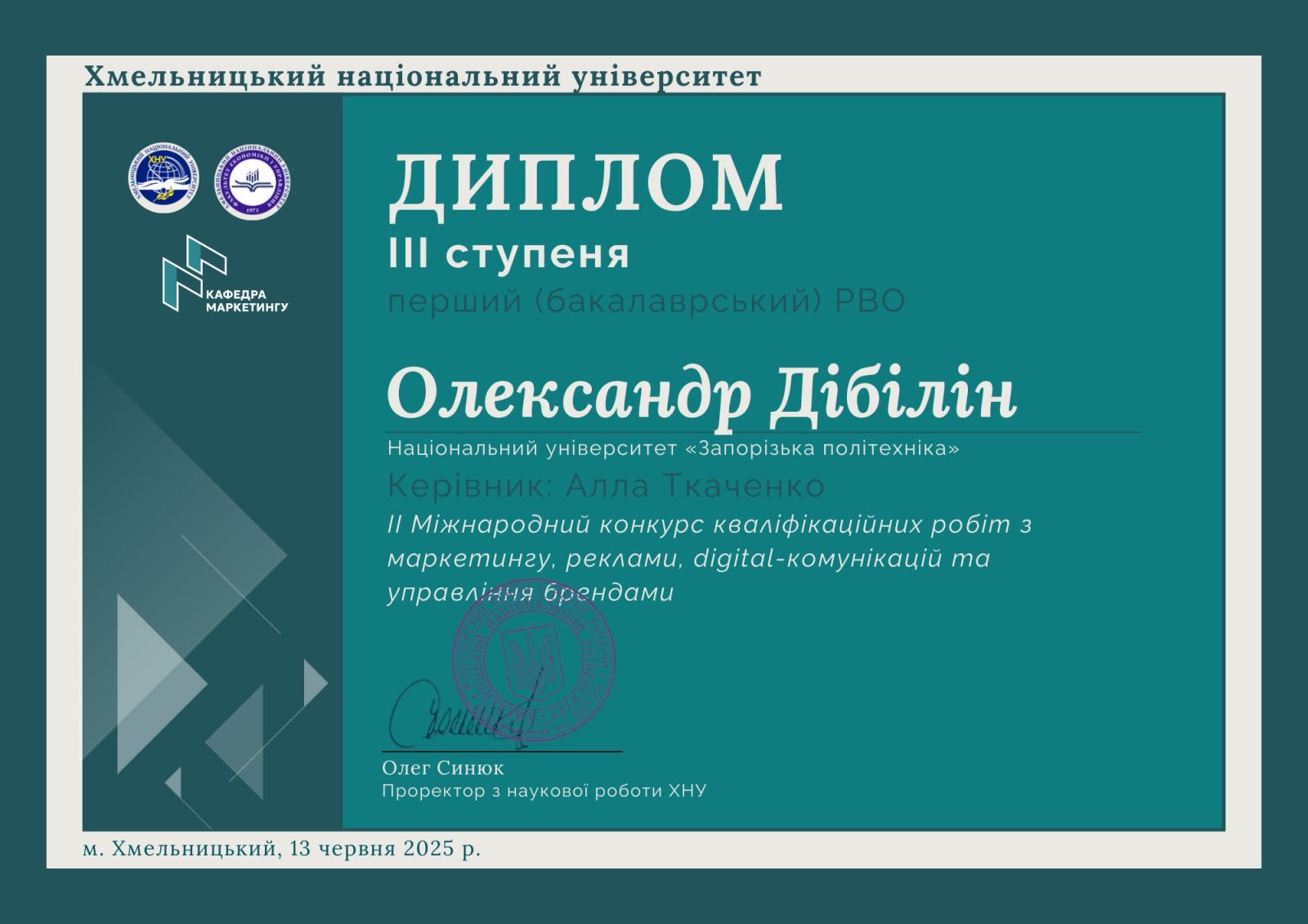 D3 «Менеджмент» за освітньою програмою «Управління проектами»;