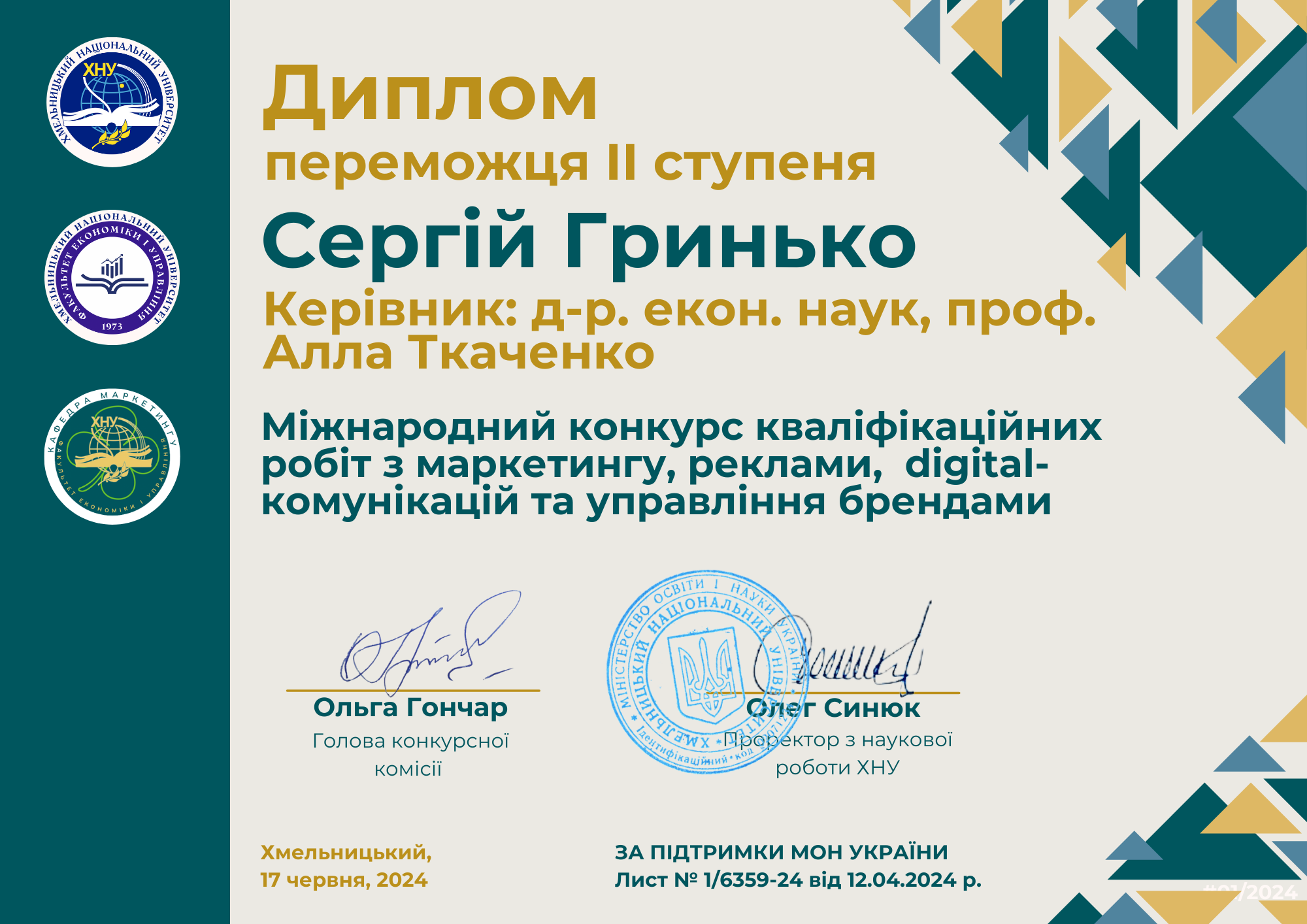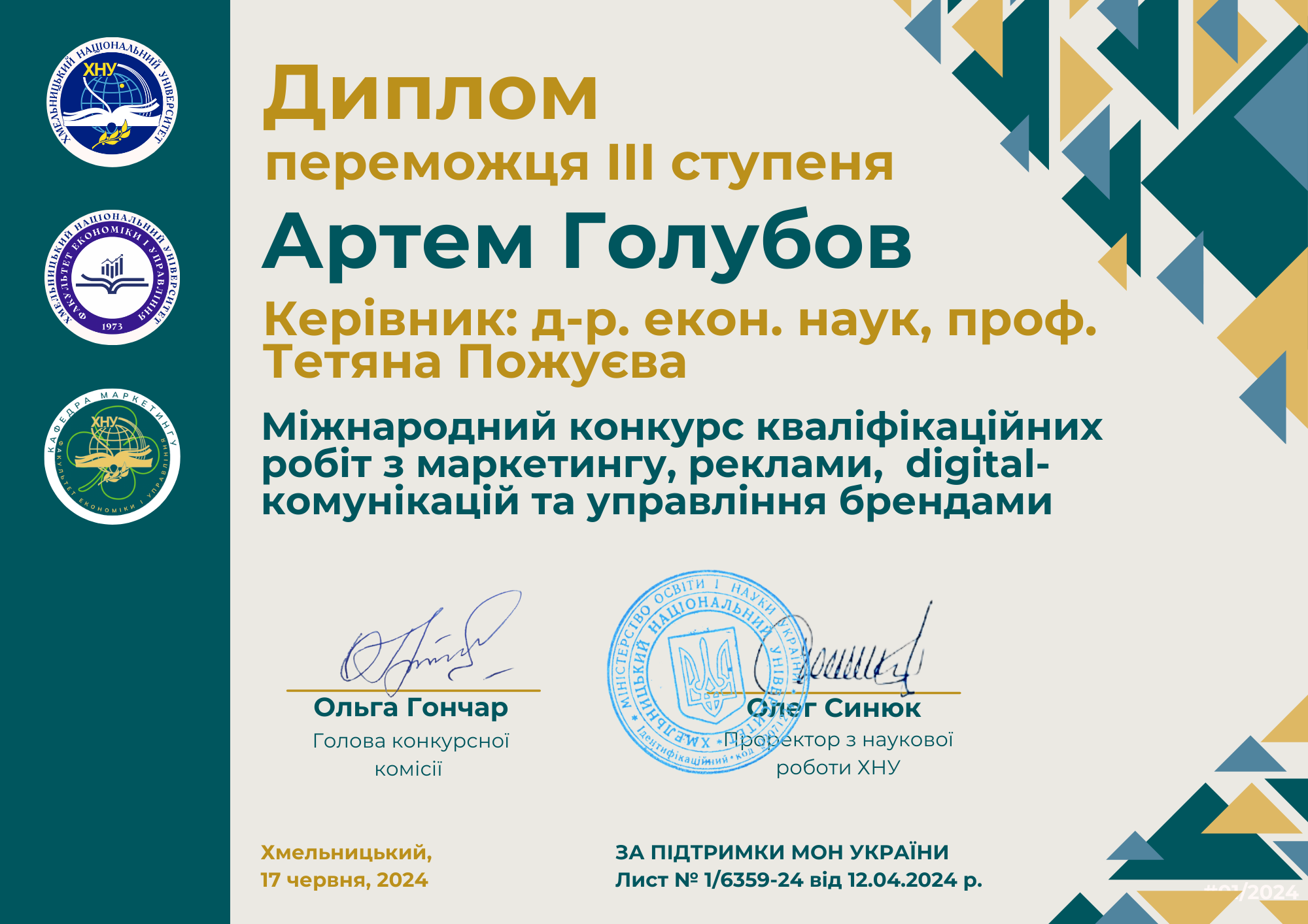 3. НДР 01711 «Управління конкурентоспроможністю суб`єктів господарювання як запорука економічної захищеності» (керівник – д.е.н., професор Ткаченко А.М. 2021-2024 рр.).