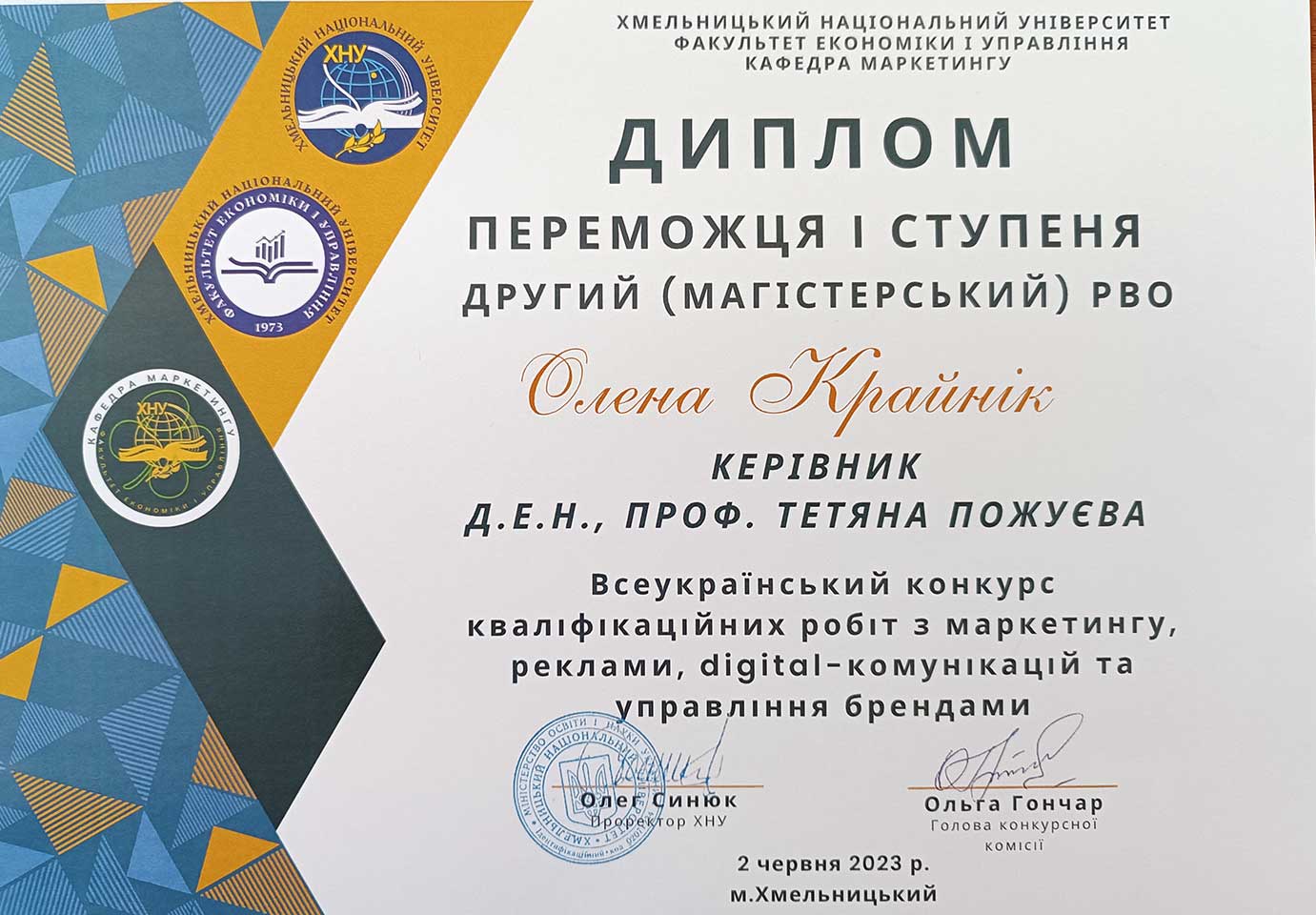 ОПП «Економіка підприємства» з підготовки здобувачів вищої освіти другого (магістерського) рівня вищої освіти;