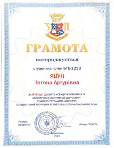 076 «Підприємництво та торгівля» за освітньою програмою «Економіка бізнесу»;