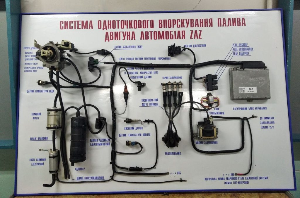 Макет системи одноточечного впорскування палива SIEMENS;