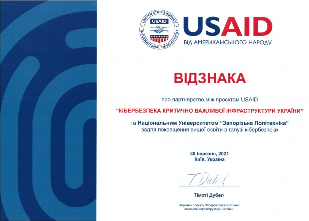USAID project Cybersecurity for Ukraine’s Critical Infrastructure