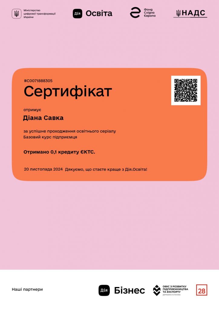 У рамках вивчення дисципліни студенти 1 курсу спеціальності 076 “Підприємництво та торгівля” пройшли онлайн-навчання за програмою «Базовий курс підприємця». Курс спрямовано на формування ключових підприємницьких компетентностей і ознайомлення з основами започаткування власної справи.