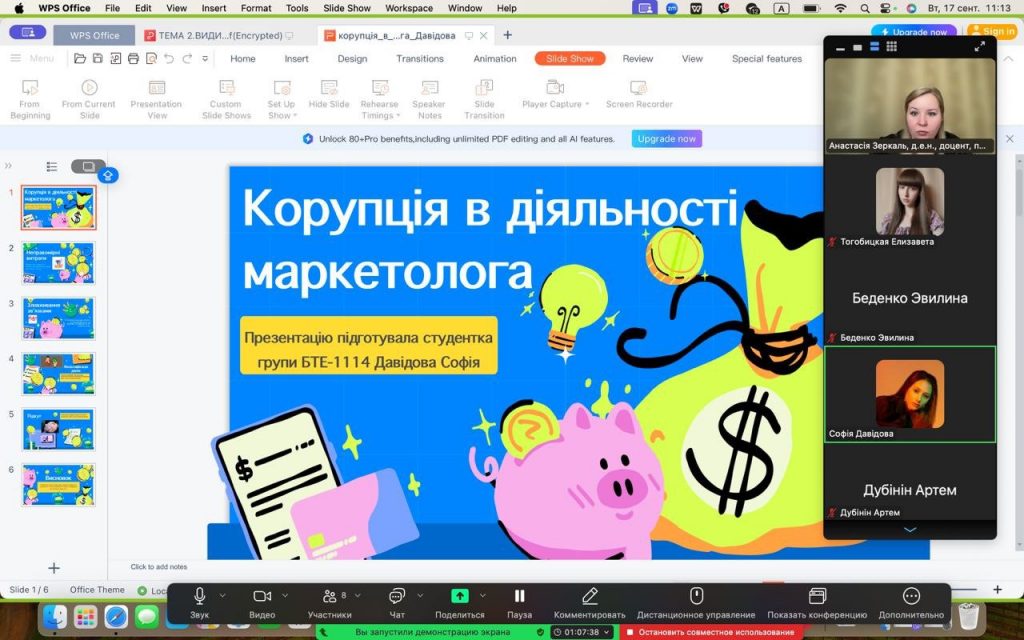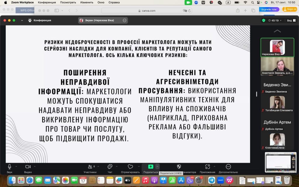 Засідання студентського наукового гуртка на тему: “Шляхи подолання ризиків недоброчесності та корупції в професії маркетолога”