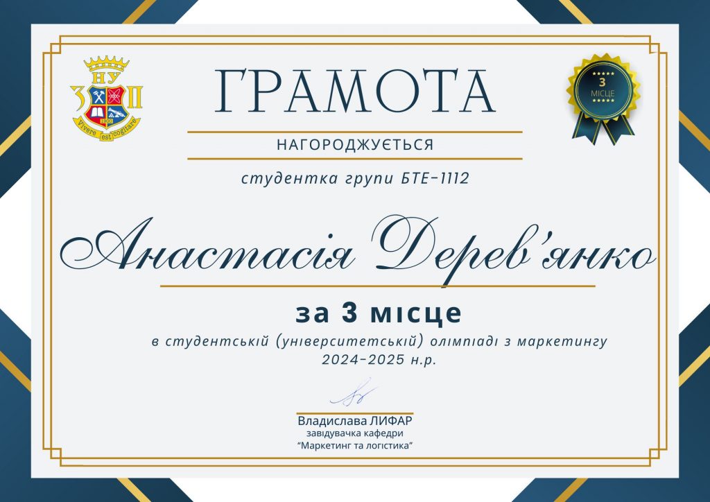 - ІІІ місце: Дерев’янко Анастасія, БТЕ-1112