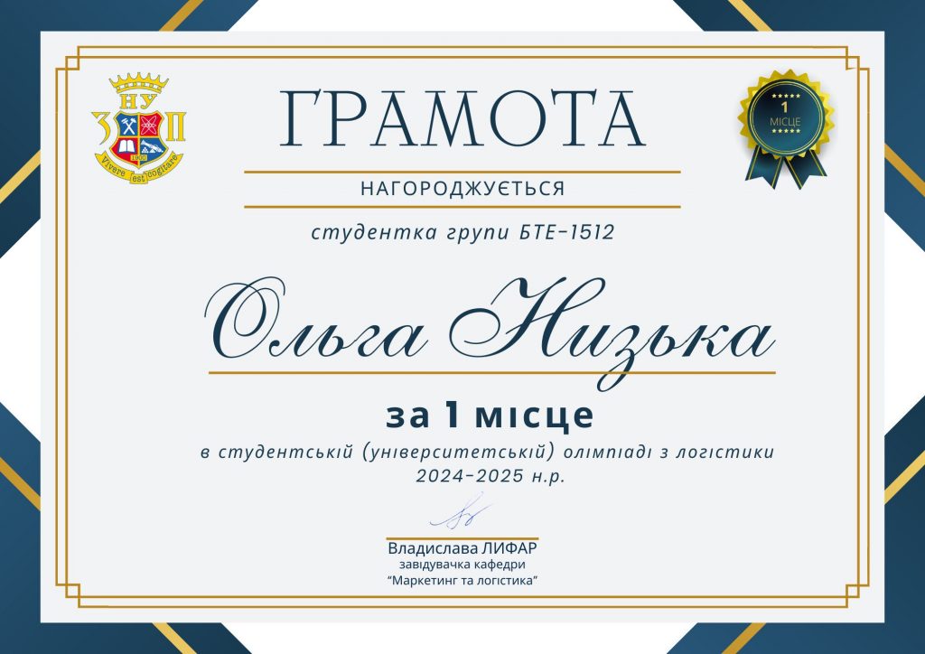 - І місце: Низька Ольга, БТЕ-1512