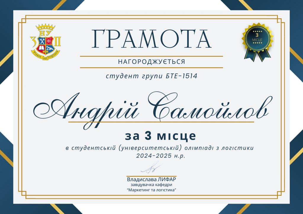- ІІІ місце: Самойлов Андрій, БТЕ-1514