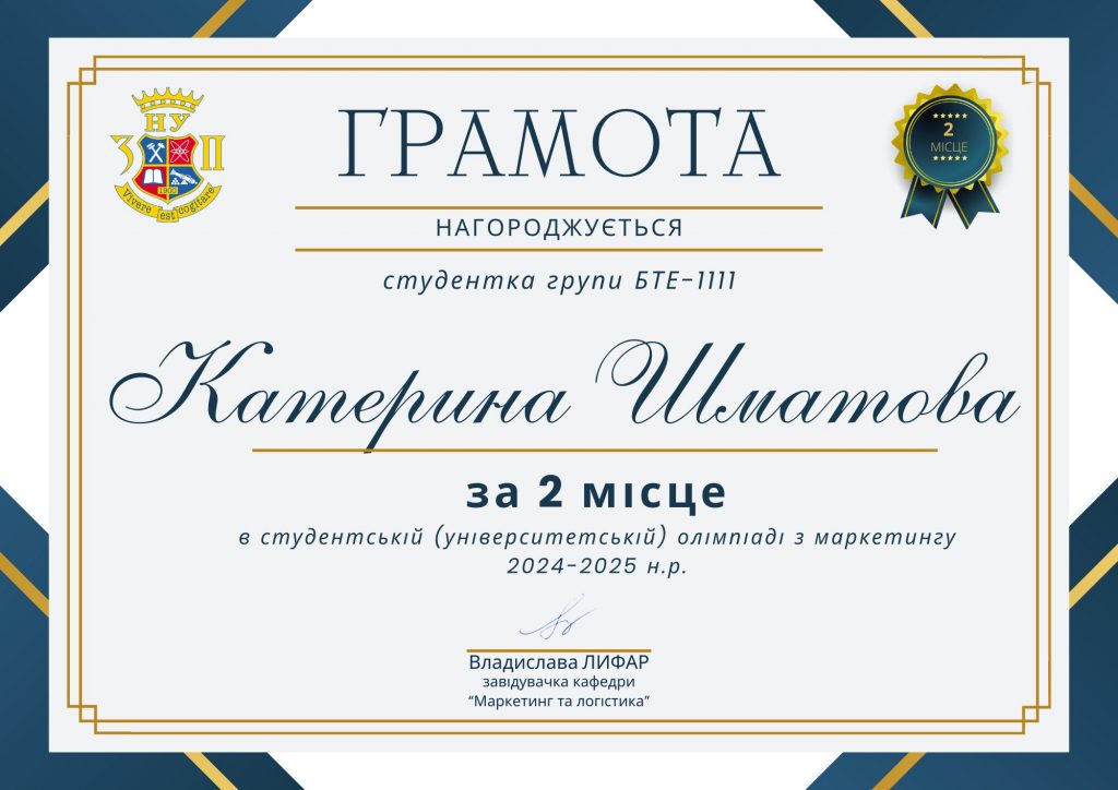 - ІІ місце: Шматова Катерина, БТЕ-1111;