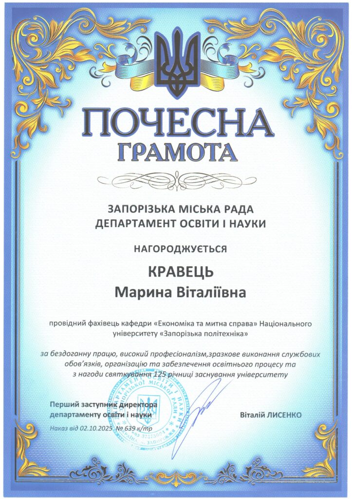 Кафедра «Економіка та митна справа» —новини 2024-2025 рік