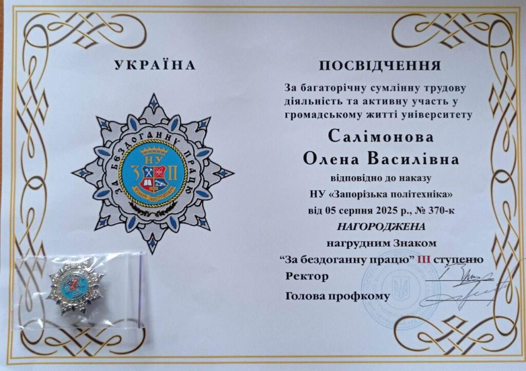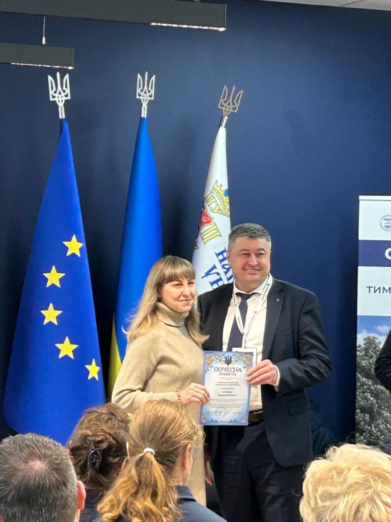 та доцента Наталю КАРПЕНКО з отриманням грамоти від НУ «Запорізька політехніка»