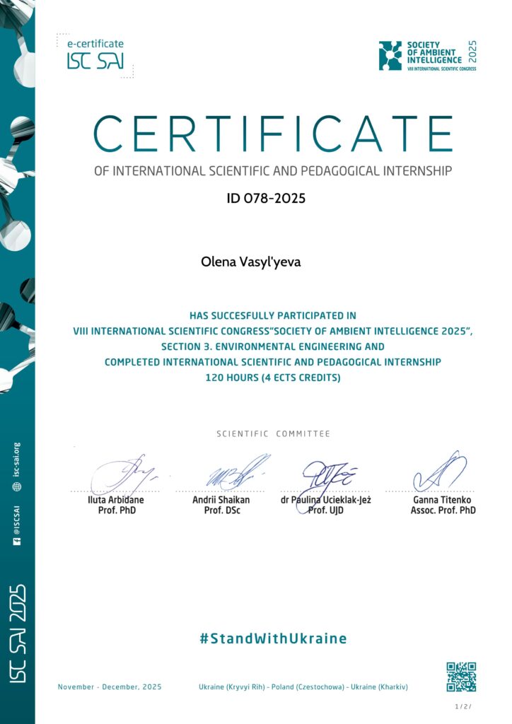 у VIII International Scientific Congress “Society of Ambient Intelligence 2025” та пройшла міжнародне стажування