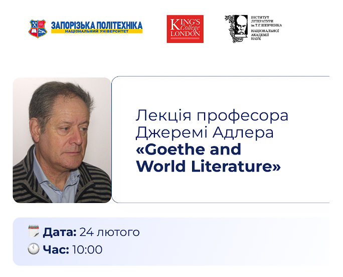 Запрошуємо взяти участь у відкритій лекції почесного професора і старшого наукового співробітника Королівського коледжу Лондона Джеремі Адлера «Goethe and World Literature»!