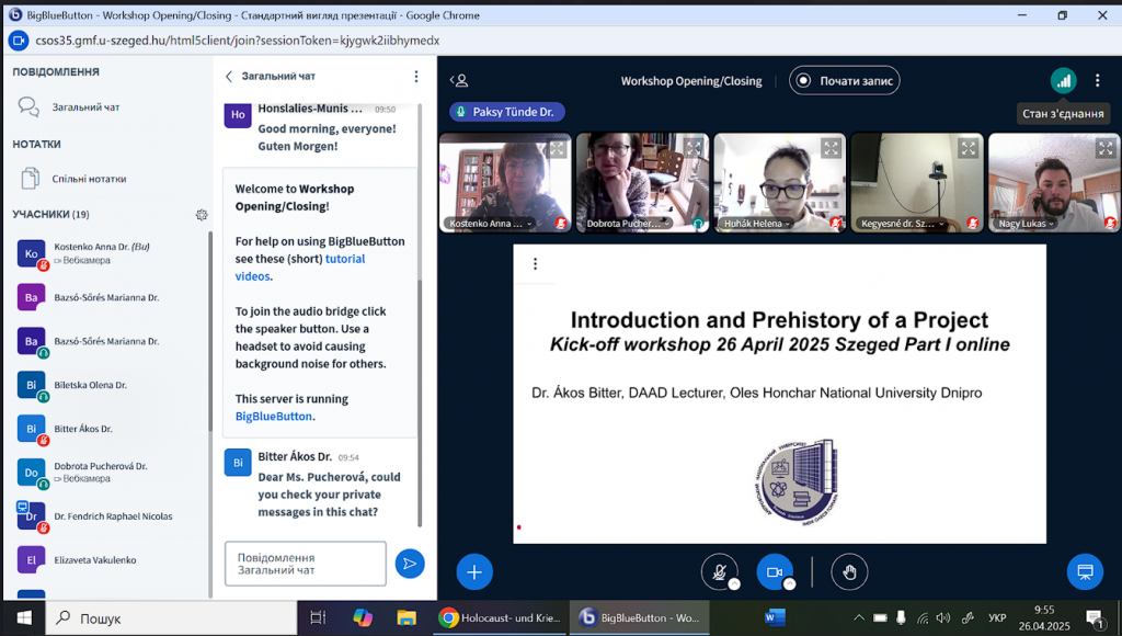 За участі викладачів і студентів з університетів Центрально-Східної Європи (DE, HU, PL, RO, SK) та України з квітня по жовтень 2025 року в Угорщині, Словаччині та Румунії буде реалізовано проєкт, присвячений мемуарам про Голокост і війну, щоб відзначити закінчення Другої світової війни 80 років тому та четвертий рік повномасштабної агресії росії проти України. Особливу увагу буде приділено згадкам про багатомовність тоді і зараз: багатомовність авторів та їхнього оточення, різні мови цільових груп мемуарів і водночас їхнє можливе врахування в інтерпретації мемуарів та їхній рецепції.
