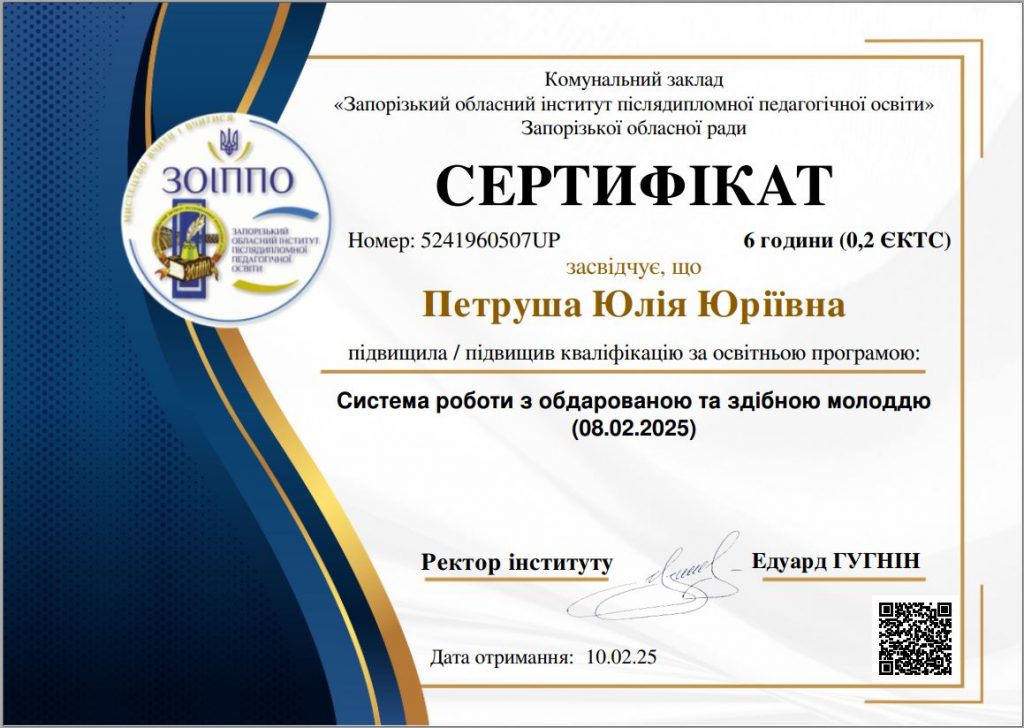 Професор Воскобойнік Олексій Юрійович, доцент Петруша Юлія Юріївна та старший викладач Повзло Валентина Миколаївна підвищили кваліфікацію за освітньою програмою: Система роботи з обдарованою та здібною молоддю