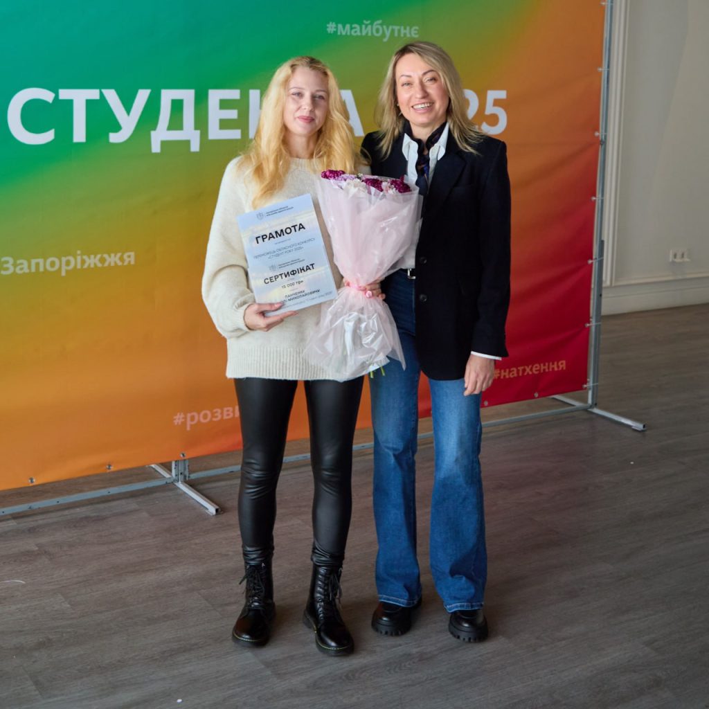 Вітаємо нашого студента Миколу Панченко гр. БАД-212 – переможця університетського та обласного етапів конкурсу «Студент року–2025» в номінації «Студент — захисник року». 14 листопада відбулась урочиста церемонія нагородження переможців обласного етапу конкурсу «Студент року–2025». Привітали переможців заступниця голови Запорізької обласної державної адміністрації Людмила Бухаріна, а від НУ «Запорізька політехніка» — проректор Андрій Іванченко. На жаль, Микола не зміг особисто бути присутнім на нагородженні, тому нагороду передали його дружині.