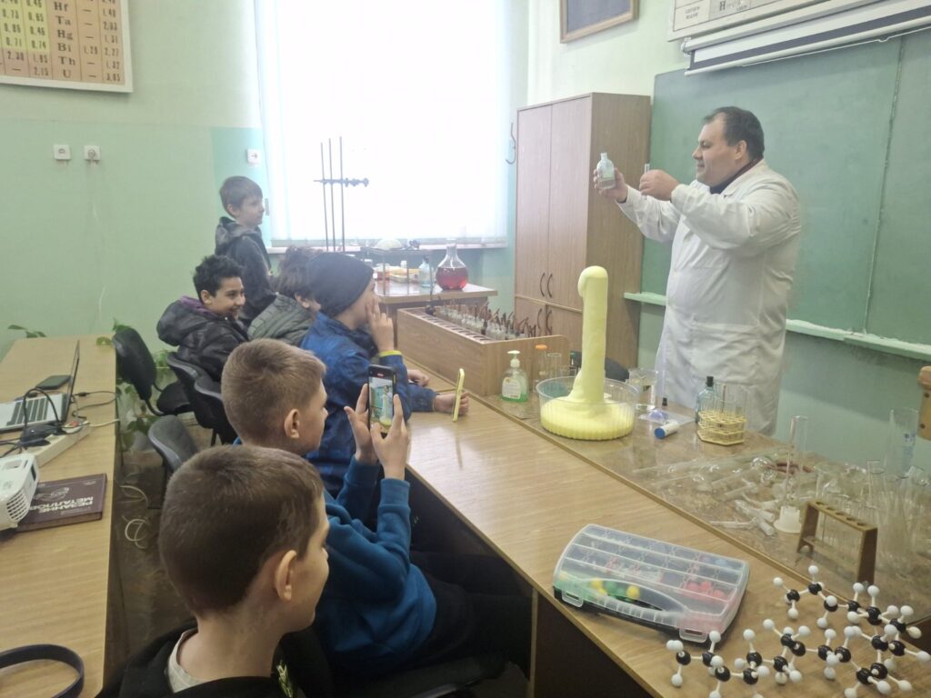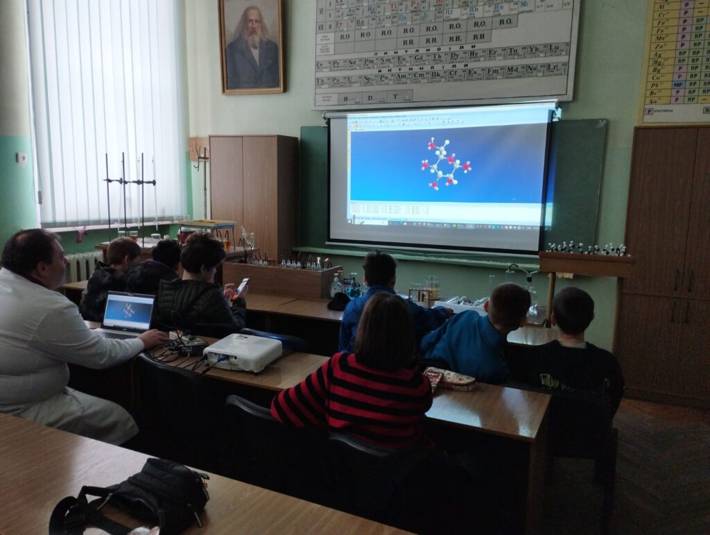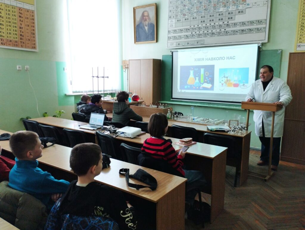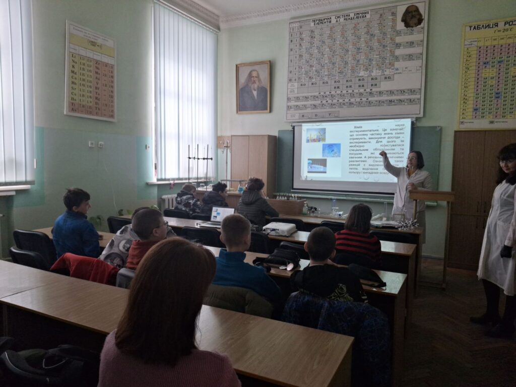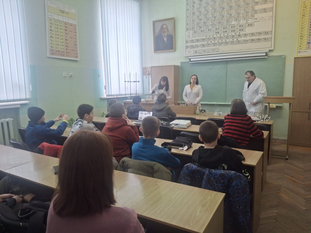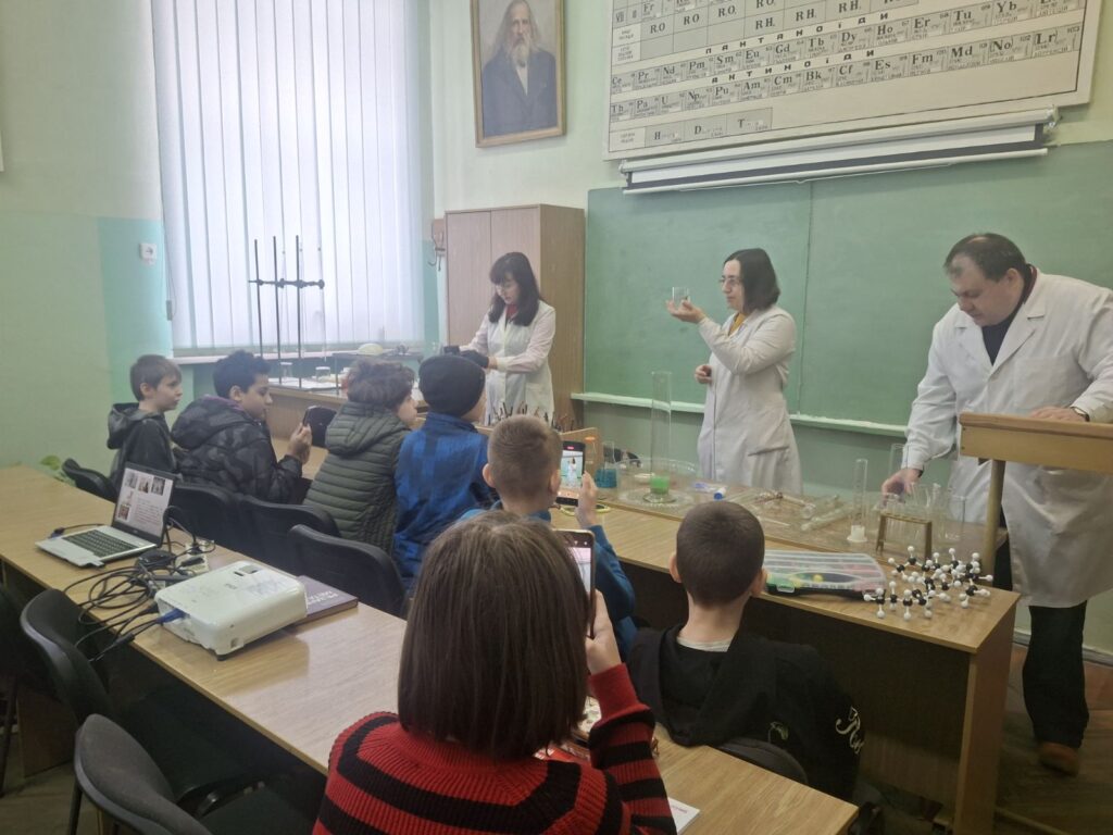В суботу, 21 березня 2026 р., викладачі кафедри КМХТ (професор Воскобойнік Олексій Юрійович, доцент Петруша Юлія Юріївна, старший викладач Повзло Валентина Миколаївна) провели очне заняття гуртка “Карусель напрямів” на тему “Хімія навколо нас” для школярів 6-7 класів. На початку заняття учням розповіли про основні досягненнями хімії та правила роботи з хімічними реактивами й хімічним посудом. Потім продемонстрували цікаві хімічні досліди, в яких школярі взяли активну участь. І на завершення заняття учні ознайомились з основами молекулярного моделювання й мали змогу попрацювати з конструктуром для складання моделей молекул, що знадобиться їм в подальшому для кращого засвоєння шкільних хімічних знань.