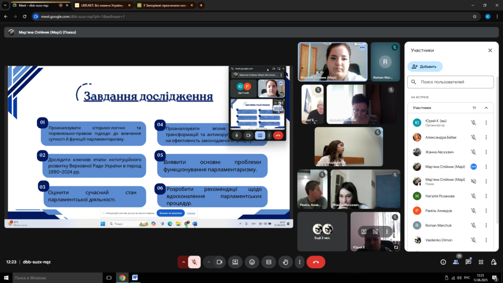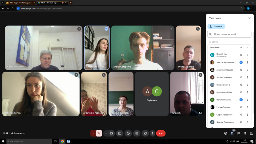 12, 13 та 16 червня 2025 року на кафедрі “Політологія та загальноправові дисципліни” відбувся публічний захист кваліфікаційних (бакалаврських) робіт здобувачів вищої освіти групи Ю-211 зі спеціальності 052 “Політологія” в дистанційному форматі.