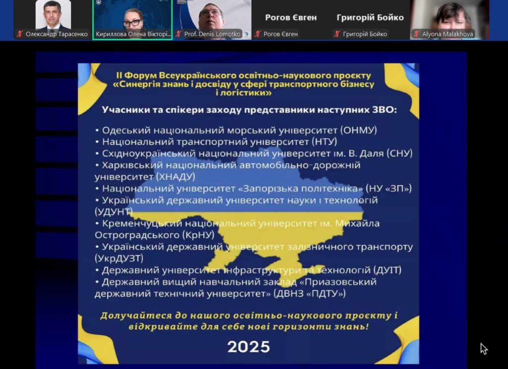29 квітня відбулася відкрита лекція «Трансформація портової діяльності в умовах війни: досвід портів Великої Одеси» в межах ІІ Форуму Всеукраїнського освітньо-наукового проєкту «СИНЕРГІЯ ЗНАНЬ І ДОСВІДУ У СФЕРІ ТРАНСПОРТНОГО БІЗНЕСУ І ЛОГІСТИКИ», ініційованого провідними транспортними закладами вищої освіти України.