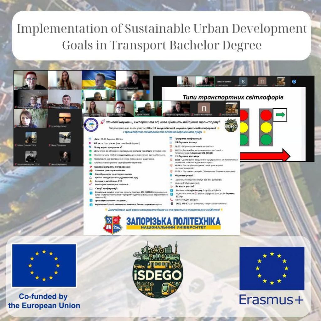 Кафедра «Транспортні технології» Національного університету «Запорізька політехніка» активно долучилася до реалізації міжнародного проєкту Erasmus+ KA2 ISDEGO («Впровадження цілей сталого розвитку міст у програми підготовки бакалаврів з транспортних технологій»), який стартував у січні 2025 року.