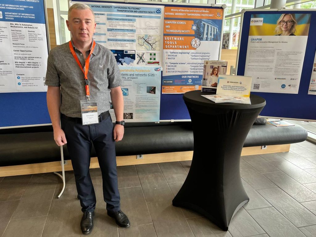 На постерній сесії заходу О. Кузькін представив вітчизняним та іноземним партнерам інформацію про транспортний факультет НУ «Запорізька політехніка» в цілому та напрямки освітньої та наукової діяльності кафедри «Транспортні технології».