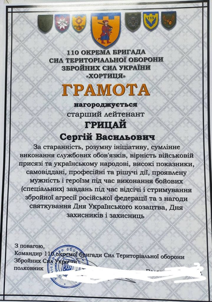 Колектив кафедри «Транспортні технології» пишається своїм колегою, старшим викладачем Сергієм Васильовичем Грицаєм, який продовжує гідно боронити Україну в лавах Збройних Сил. Його активна участь у захисті країни від російських загарбників є прикладом мужності та патріотизму. Щиро вітаємо Сергія Васильовича з отриманням чергових заслужених нагород! Бажаємо йому міцного здоров’я, наснаги та якнайшвидшого повернення до рідного міста та викладацької діяльності.