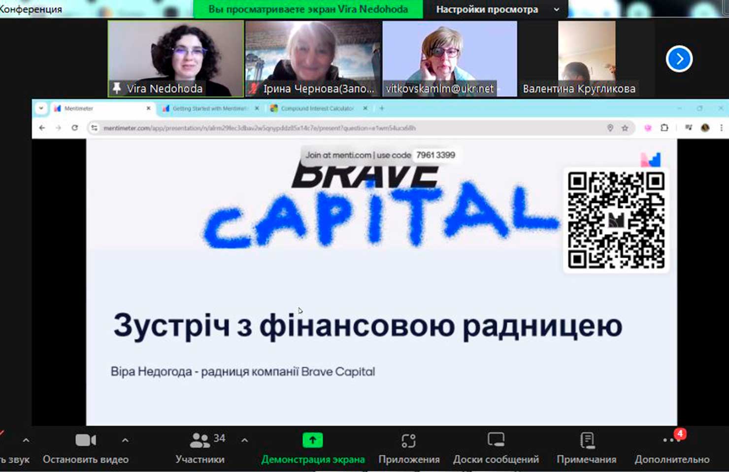 28 жовтня 2024 року здобувачі кафедри бізнесу та управління Запорізької політехніки мали нагоду поспілкуватися з фінансовою радницею Brave Capital, інвесторкою на фондовому ринку, співзасновницею проєкту @spilno sany Вірою Недоходою.