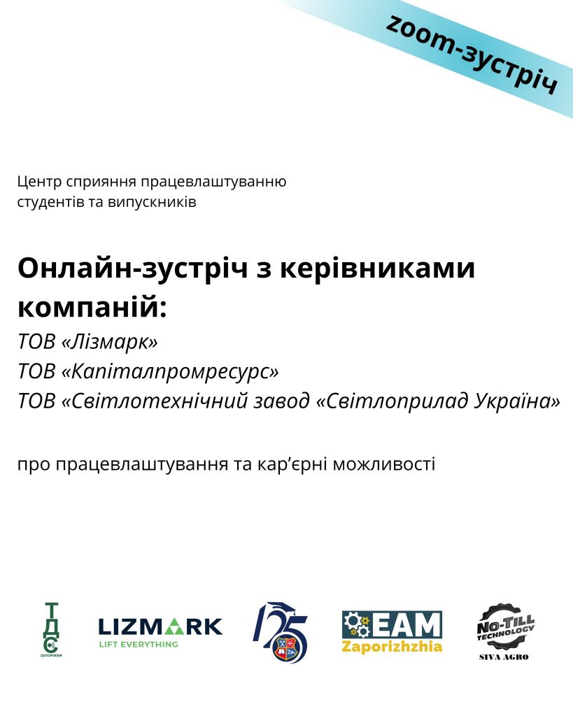 20 червня відбулась онлайн-зустріч, присвячена дуальній формі освіти для студентів спеціальності «Філологія», з керівниками провідних підприємств Запоріжжя — членами Запорізького кластера «Інжиніринг — Автоматизація — Машинобудування».