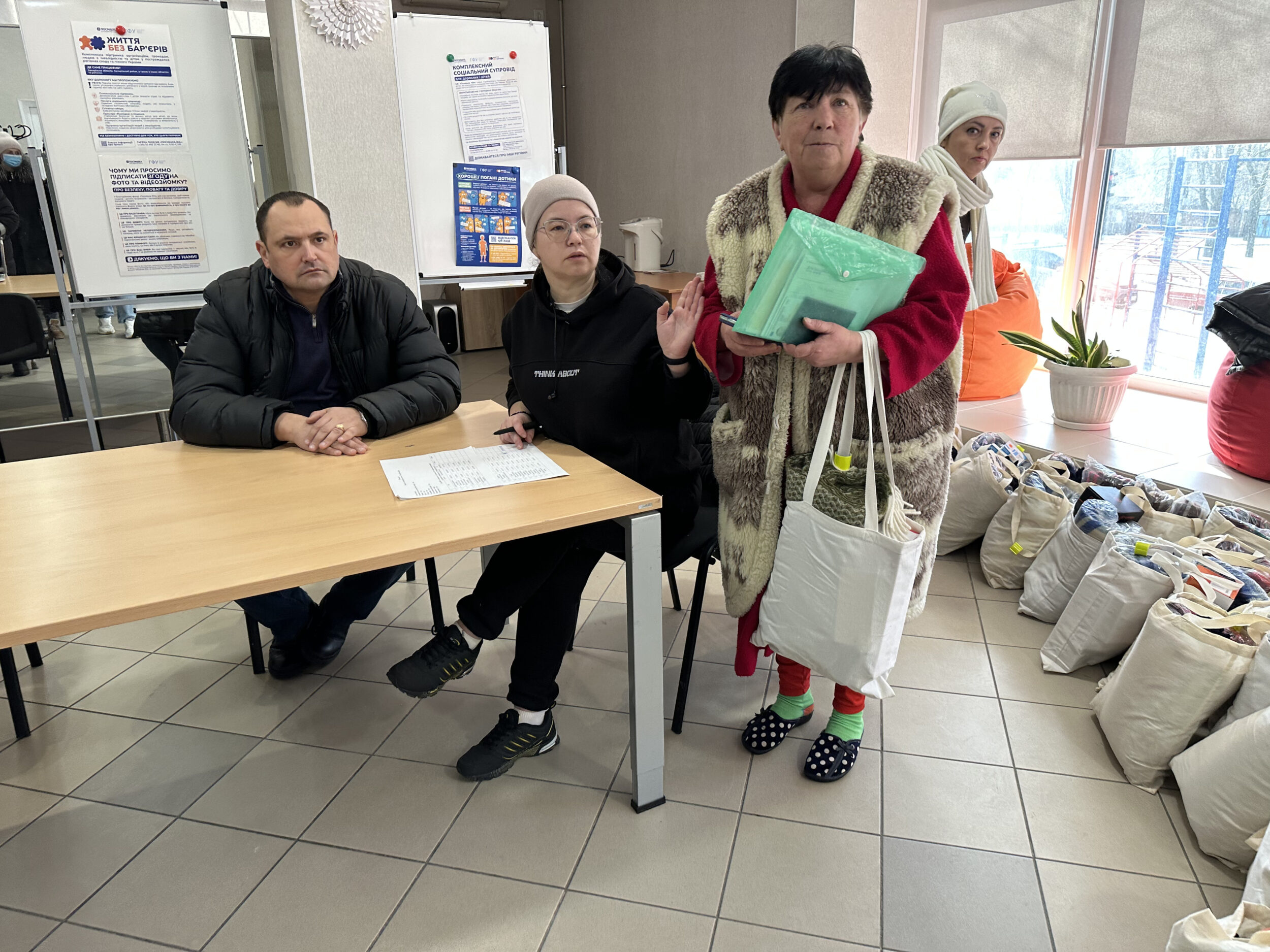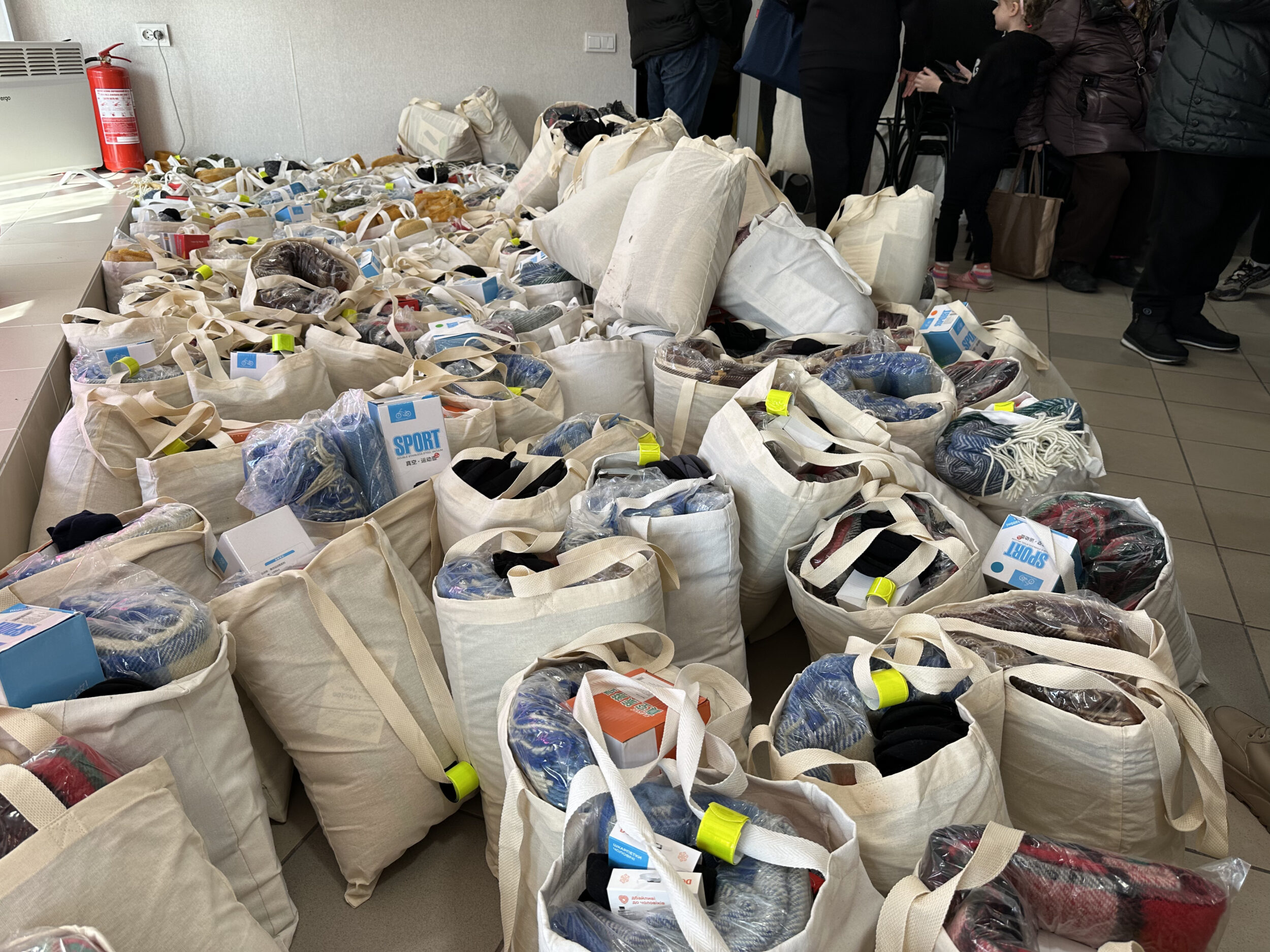 У торбинках — речі, які необхідні під час холодів і відключень світла: ковдри, термоси, ліхтарики та павербанки.