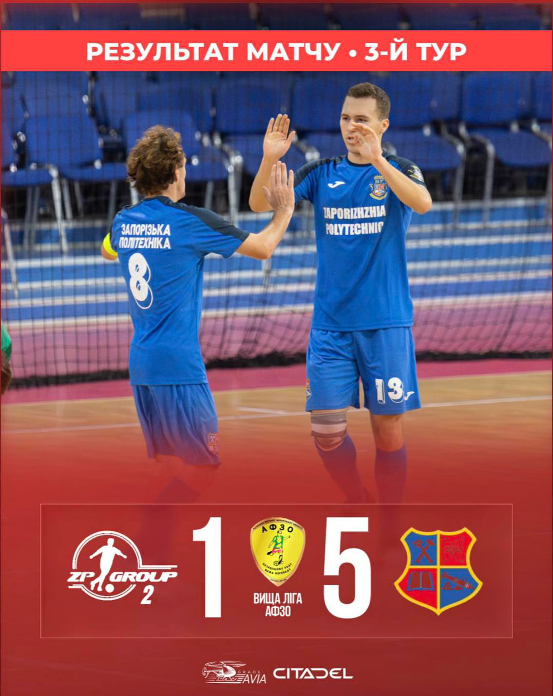 8 листопада збірна команда НУ «Запорізька політехніка» з футзалу у 3 турі Вищої ліги АФЗО здобула переконливу перемогу — 5:1 над Zp Group–2!