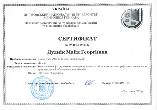 Відповідно до ПОЛОЖЕННЯ про підвищення кваліфікації педагогічних і науково – педагогічних працівників у Національному університеті «Запорізька політехніка» науково – педагогічні працівники кафедри дизайну, проходять підвищення кваліфікації з метою професійного розвитку, поглиблення теоретичних та практичних навичок у межах спеціальностей: 191 «Архітектура та містобудування» та 022 «Дизайн» для забезпечення високої якості освітнього процесу.