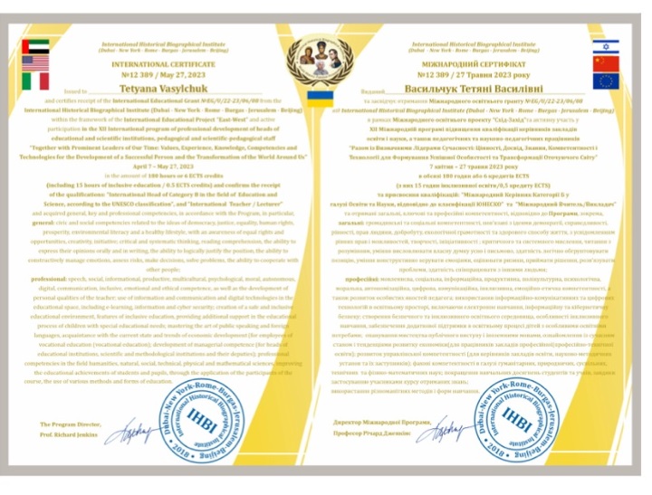 Підвищення кваліфікації Васильчук Тетяна Василівна