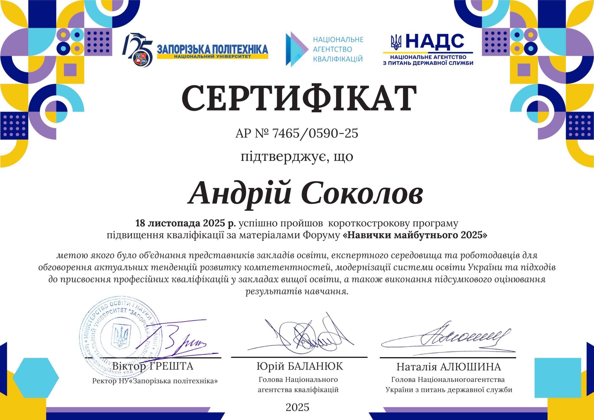 Сертифікат підвищення кваліфікації «Навички майбутнього 2025»