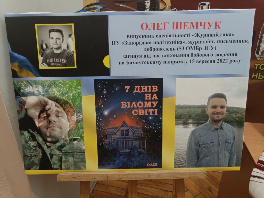 Втрачені життя, знищені долі, родини та надії…. Війна руйнує майбутнє, забирає найкращих професіоналів, патріотів, тих хто мав мрію розбудовувати й жити у новій європейській Україні. Саме таким був випускник спеціальності «Журналістка» Національного університету «Запорізька політехніка» Олег Шемчук. Життєрадісний і талановитий хлопець, який ставив перед собою амбітні цілі та прагнув реалізувати свій інтелектуальний потенціал в досягненні суспільної користі. Професійною журналістською діяльністю Олег долучався до розбудови демократичних цінностей у суспільстві, як журналіст-розслідувач займався викриттям корупційних схем у сфері державного управління. Завжди був відкритий до діалогу з громадськістю, менторства, будь-яких публічних рецепцій, із великим задоволенням ділився своїм професійним інструментарієм зі студентами. Працюючи в редакції медіа «Наші гроші», Олег Шемчук неодноразово проводив тренінги для студентів-журналістів в межах вивчення курсу «Журналістське розслідування», давав практичні рекомендації роботи з відкритими та закритими базами даних, розповідав про власні кейси в розслідуваннях, допомагав журналістам-початківцям вибудовувати викривальні стратегії у межах роботи над різними темами. З великим сумом, але теплими спогадами сьогодні переглядаю світлини у Facebook, які, наче, закарбували в пам’яті останні діалоги, спільні інтереси, професійні плани…. Вічна шана тобі наш Захиснику! Наш Олег Шемчук!