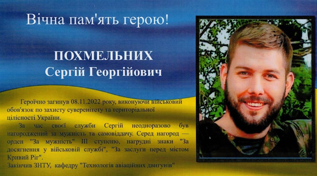 Сергій Похмельних служив за контрактом, отримав військове звання капітана, командира гаубичної самохідної артилерійської батареї, став на захист своєї держави у складі 55-ї окремої артилерійської бригади «Запорізька Січ».