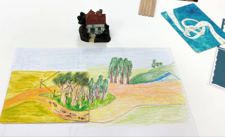 За допомогою предметних метафор, метафоричних асоціативних карт із зображеннями різноманітних доріг, шляхів і стежок, артметодів, зокрема малювання і моделювання на піску учасники досліджували себе і свій життєвий шлях, шукали відповіді на запитання «Хто Я?», «Де я зараз?», «На якому етапі життєвого шляху я знаходжусь?», «Якою стежкою мого життя я йду?», «Що мені допомагає, підтримує і є ресурсом?».
