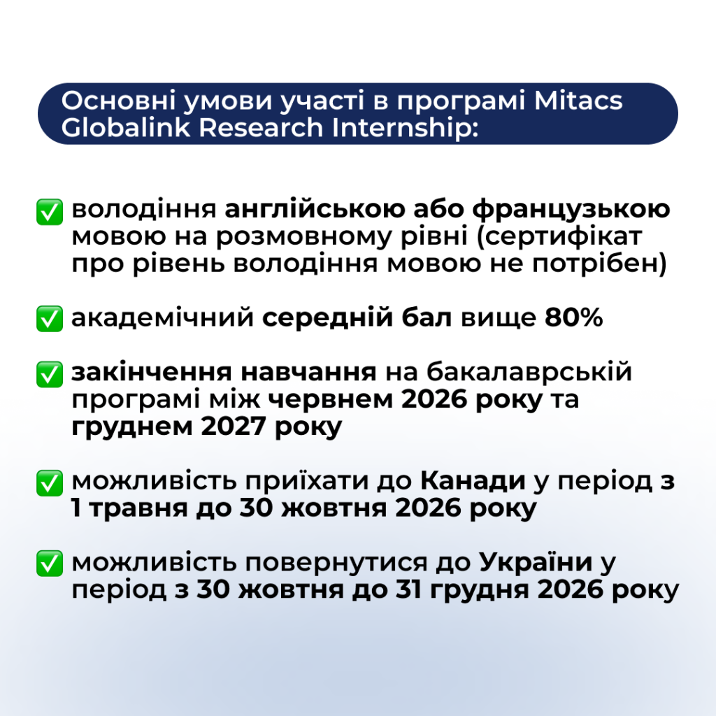 🔗 сайт українського відділу Mitacs: https://www.mitacsua.org/mitacs-globalink-research-internship/