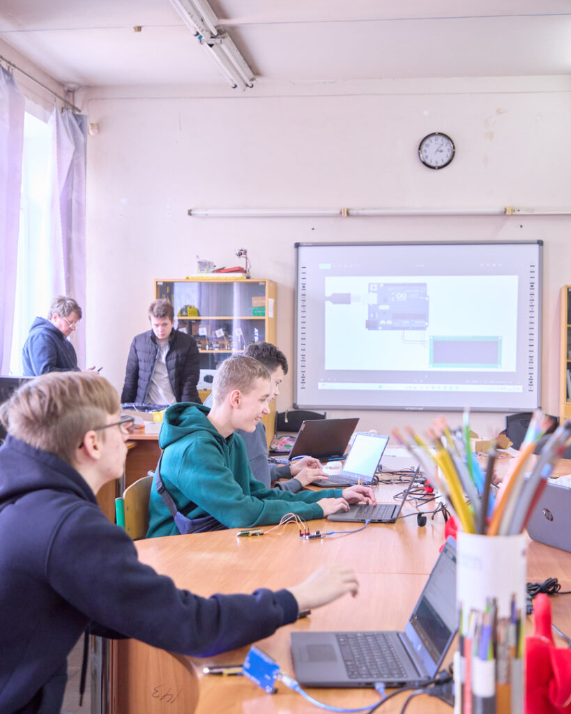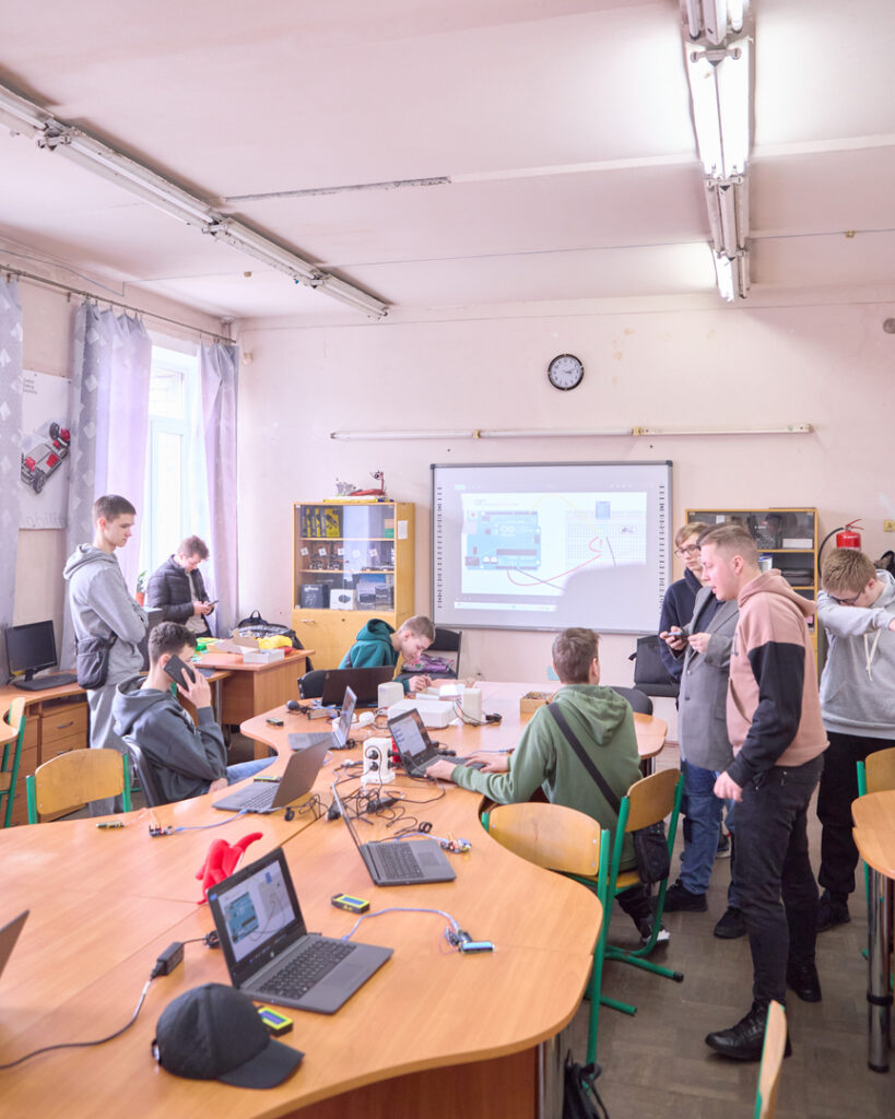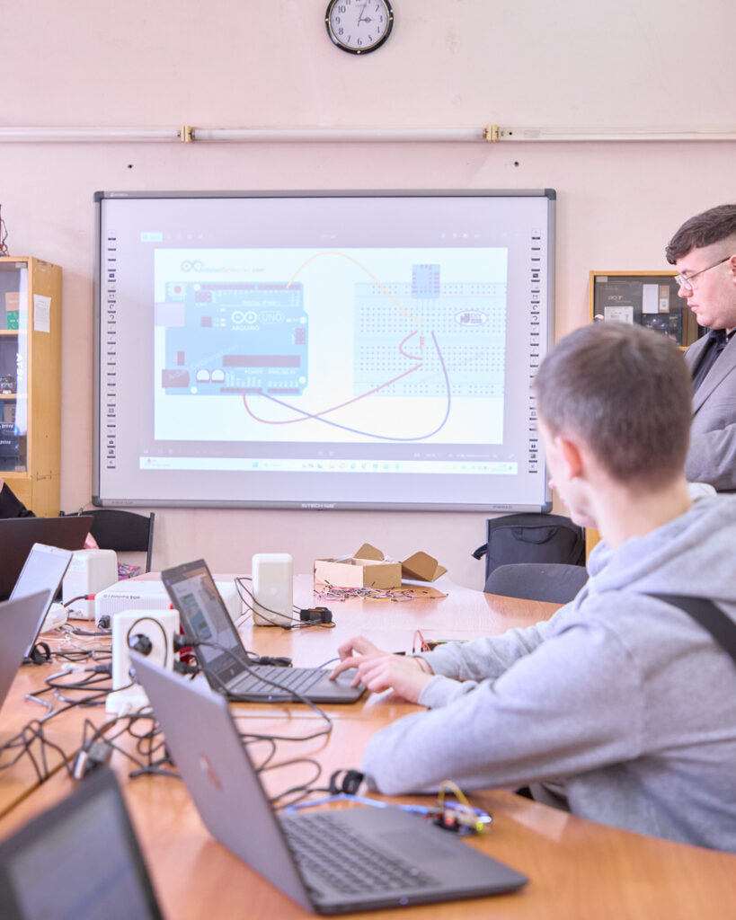 Діти отримують початкові навички складання схем та власноруч розробляють частину проєкту, яка призначена для виведення виміряних даних на індикатор.