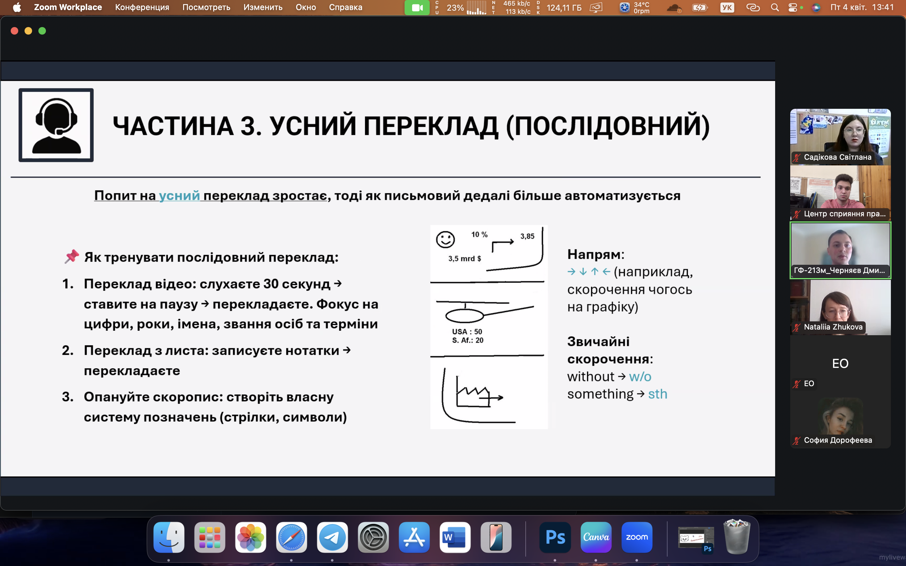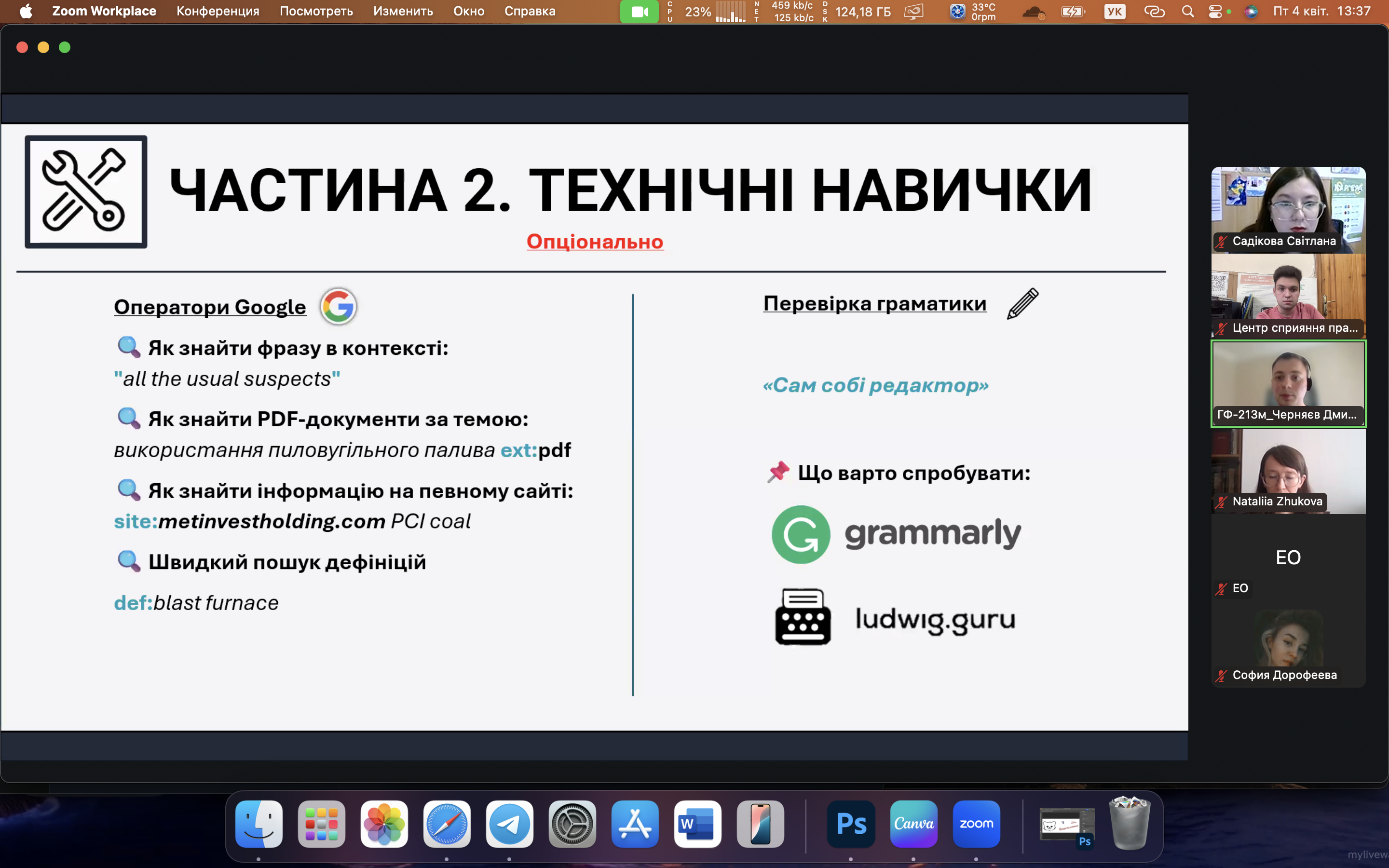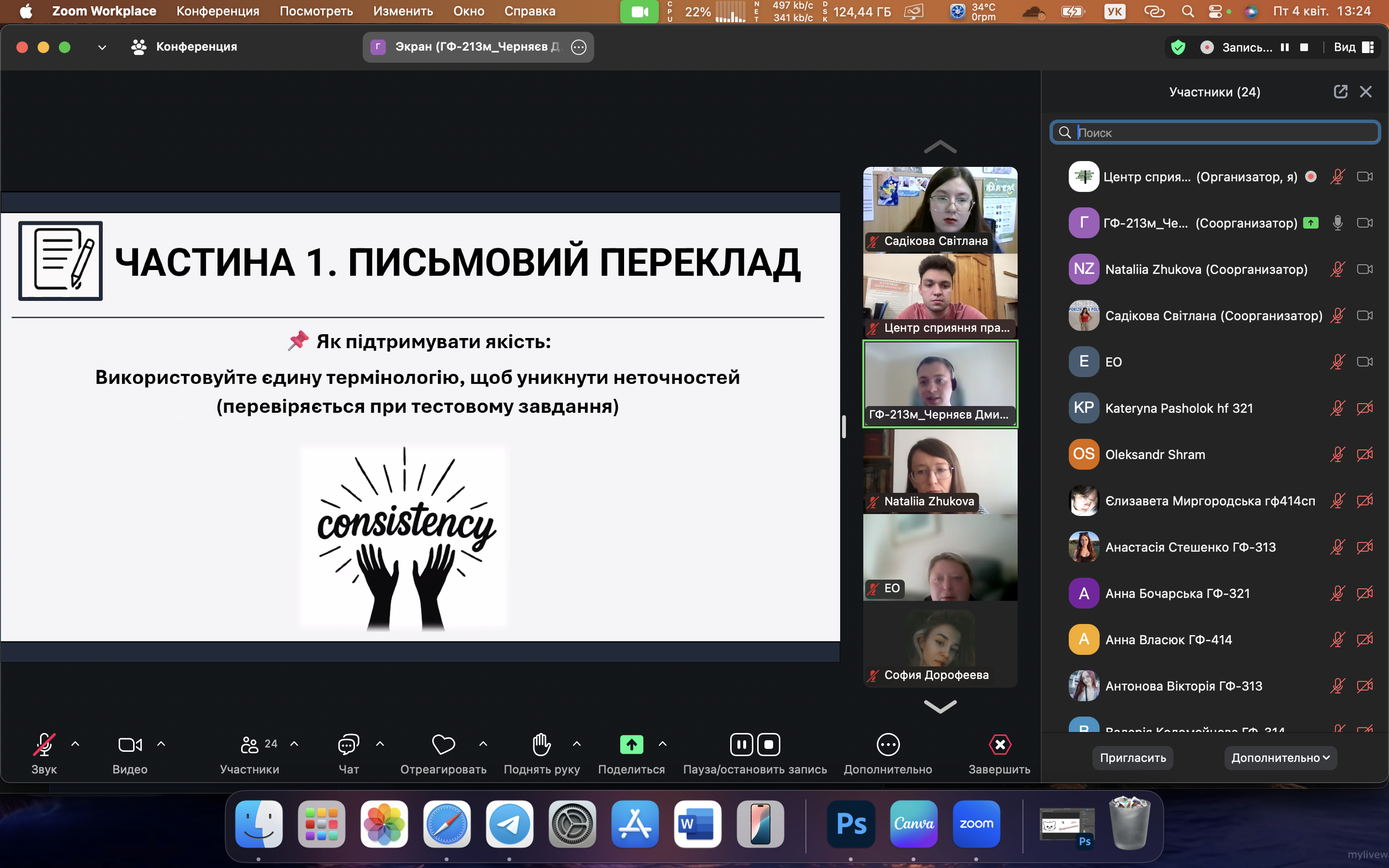 4 квітня відбулася онлайн-зустріч, яка об’єднала студентів, випускників та викладачів Запорізької політехніки, зацікавлених у розвитку кар’єри в сфері технічного перекладу. Спікером заходу виступив Дмитро Черняєв — перекладач центру перекладацької підтримки ТОВ «Метінвест Бізнес Сервіс», випускник НУ «Запорізька політехніка». Під час зустрічі Дмитро поділився практичними порадами щодо побудови кар’єри у сфері технічного перекладу. Особливу увагу він приділив значенню як письмового, так і усного перекладу в роботі технічного фахівця, наголосивши на важливості володіння обома напрямами для професійного зростання. Зустріч пройшла в інтерактивному форматі, з активною участю слухачів, які ставили запитання та ділилися своїми думками. Було обговорено багато практичних аспектів роботи перекладача, а також значення міждисциплінарної підготовки у сучасному ринку праці.