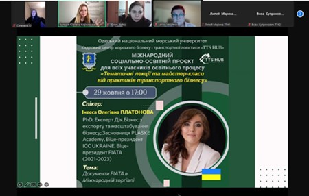 Міжнародний соціально-освітній проєкт «Тематичні лекції та майстер-класи від практиків транспортного бізнесу» за підтримки Кадрового центру морського бізнесу і транспортної логістики «TTS HUB». Цей захід є частиною дисципліни «Транспортно-експедиторська діяльність».