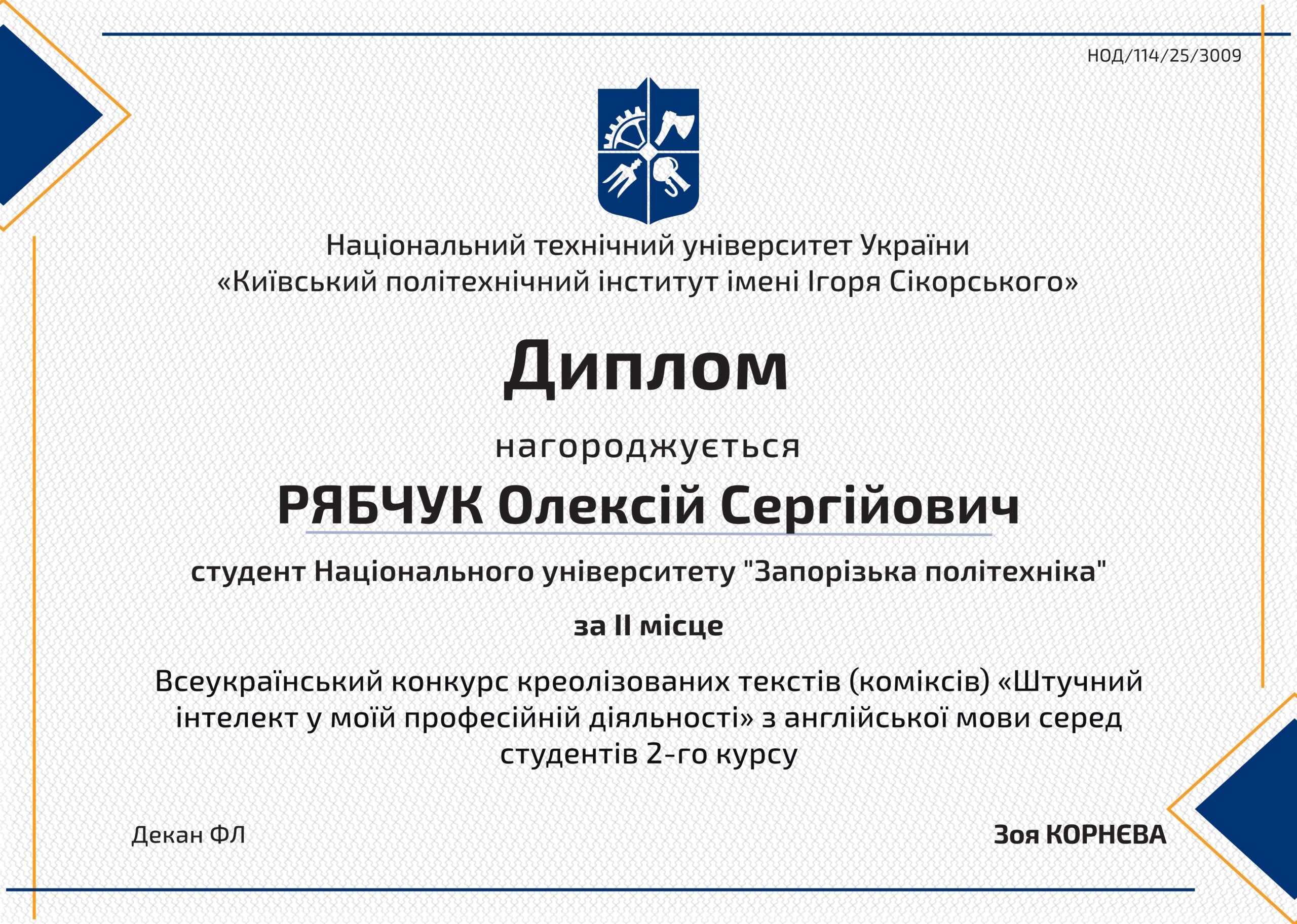 Відбувся Всеукраїнський конкурс креолізованих текстів (коміксів) «Штучний інтелект у моїй професійній діяльності» з англійської мови, який проходив на базі КПІ ім. Ігоря Сікорського. Участь у заході взяли НУ «Запорізька політехніка», Полтавська політехніка та Вінницький державний педагогічний університет ім. Михайла Коцюбинського.
