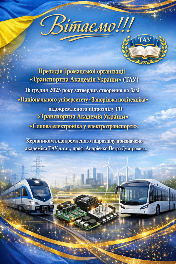 Створення відокремленого підрозділу “Силова електроніка у електротранспорті” на базі Національного університету «Запорізька політехніка»