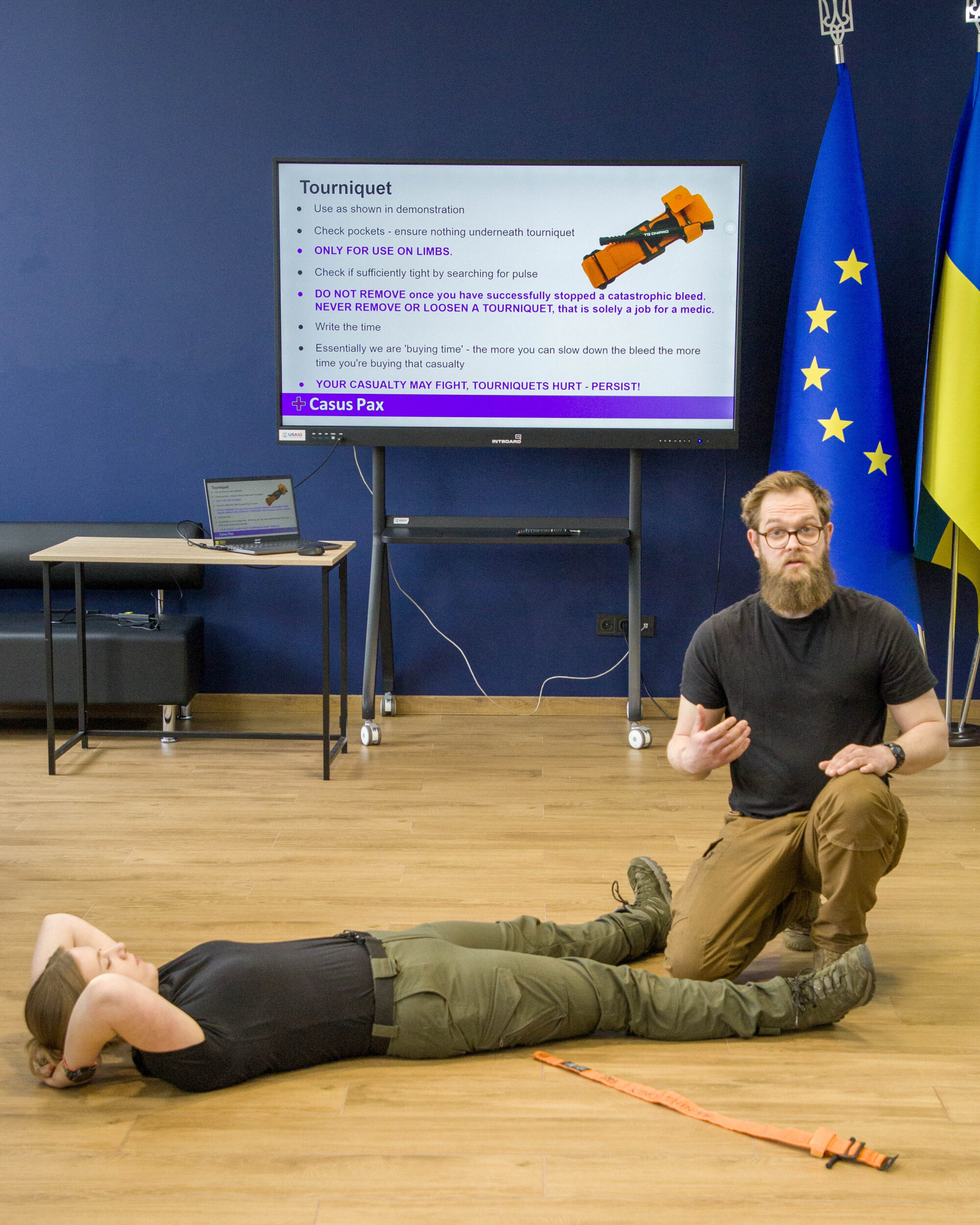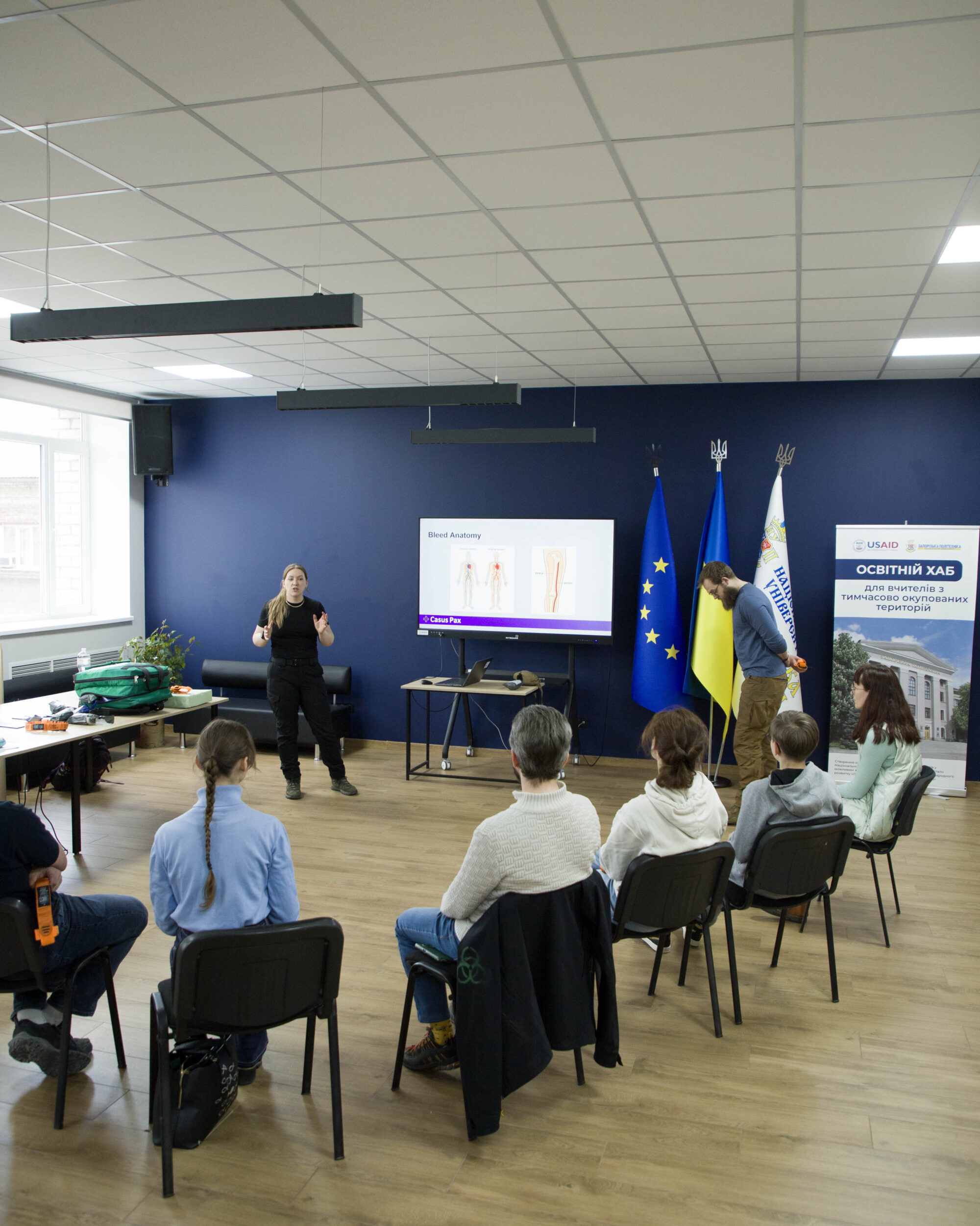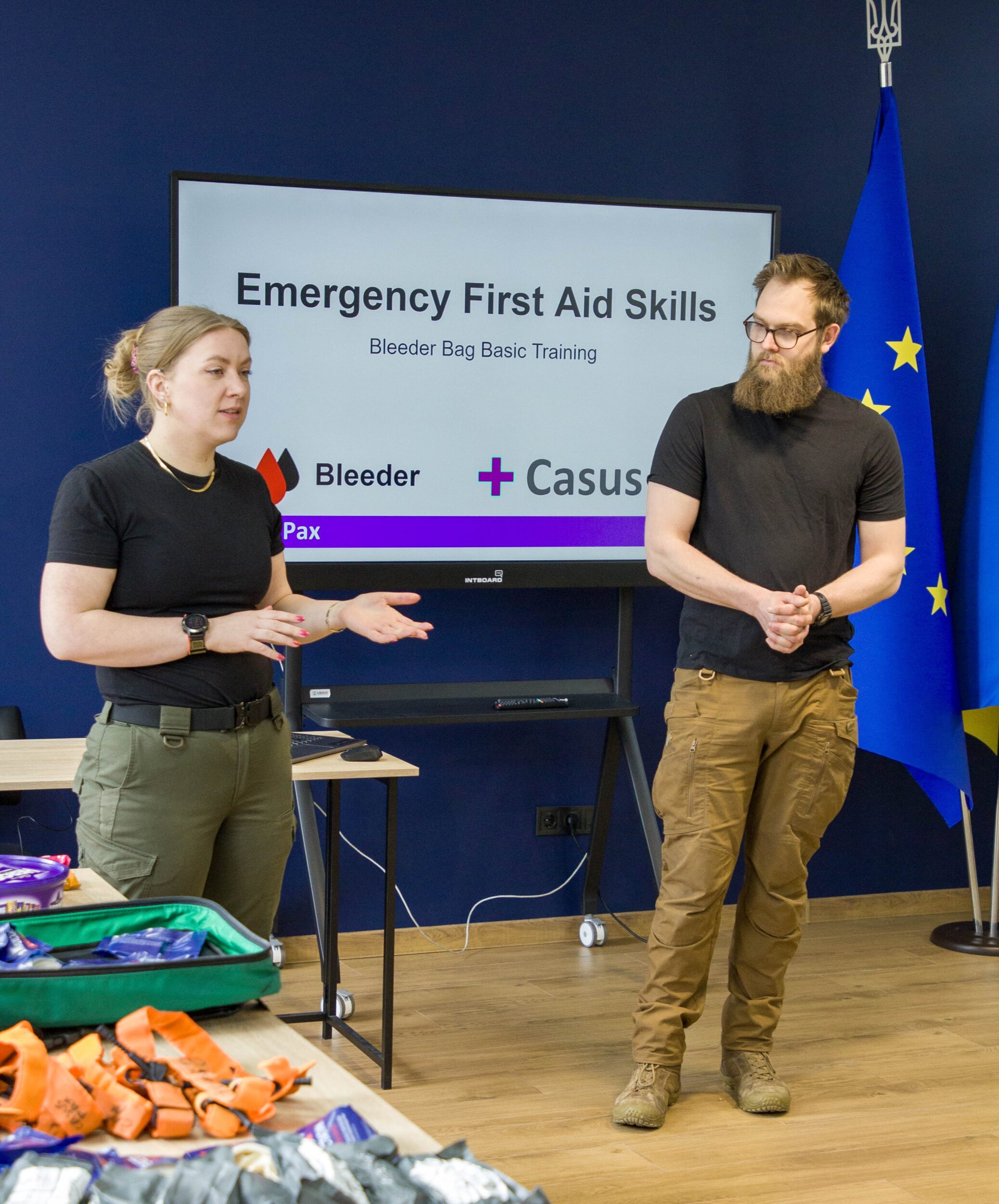 11 та 14 квітня відбулися тренінги «Навички надання першої допомоги в екстрених ситуаціях» (Emergency First Aid Skills), які провели волонтери Адам МакКвайєр та Холлі Танн, сертифіковані військові медики, засновники британської неприбуткової організації «Casus Pax».